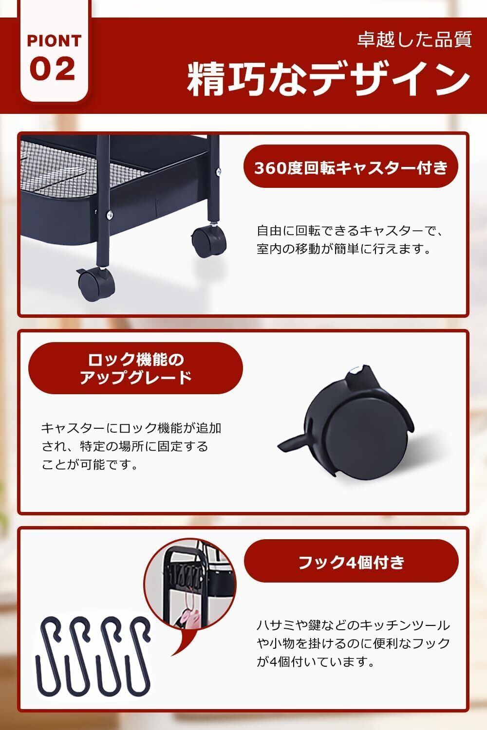 【組み立てが簡単・360度回転可能なキャスター付き】この収納ラックは、組み立て式で、誰でも簡単に設置することができます。商品には組み立てに必要な工具がすべて付属しており、さらに日本語の詳しい組み立て説明書とビデオチュートリアルもあるため、初心者でも簡単に完成させることができます。特に、4つのキャスターのうち2つにはブレーキが付いており、360度自由に回転するので、床の上で簡単に移動できるだけでなく、必要な場所でしっかりと固定もできます。忙しいキッチンやオフィス、さらには掃除の際の移動が簡単になるなど、日々の生活を快適にサポートします。
