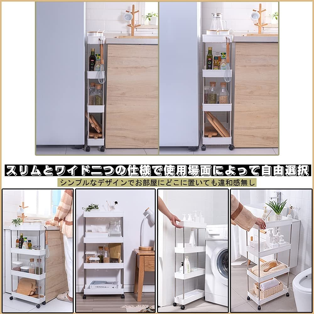 【シンプルで実用的、シーンを選ばないワゴン・カート】 細身設計の収納ラックは、部屋、キッチン、ランドリー、脱衣所、冷蔵庫、洗濯機や洗面台などの場所での使用に最適で、省スペースで、隙間を活用することができます。製品材質:ステンレス+ABS。耐久性のあるプラスチック素材で作られており、軽量で移動しやすいです。壁や隙間に寄りかからない場合、安定性を高めるために、洗剤などの重いものを下に置くことをオススメいたします。カゴはメッシュ状なので、通気性・排水性が良く、汚れが落ちやすくカビの発生も防ぐことができます。
