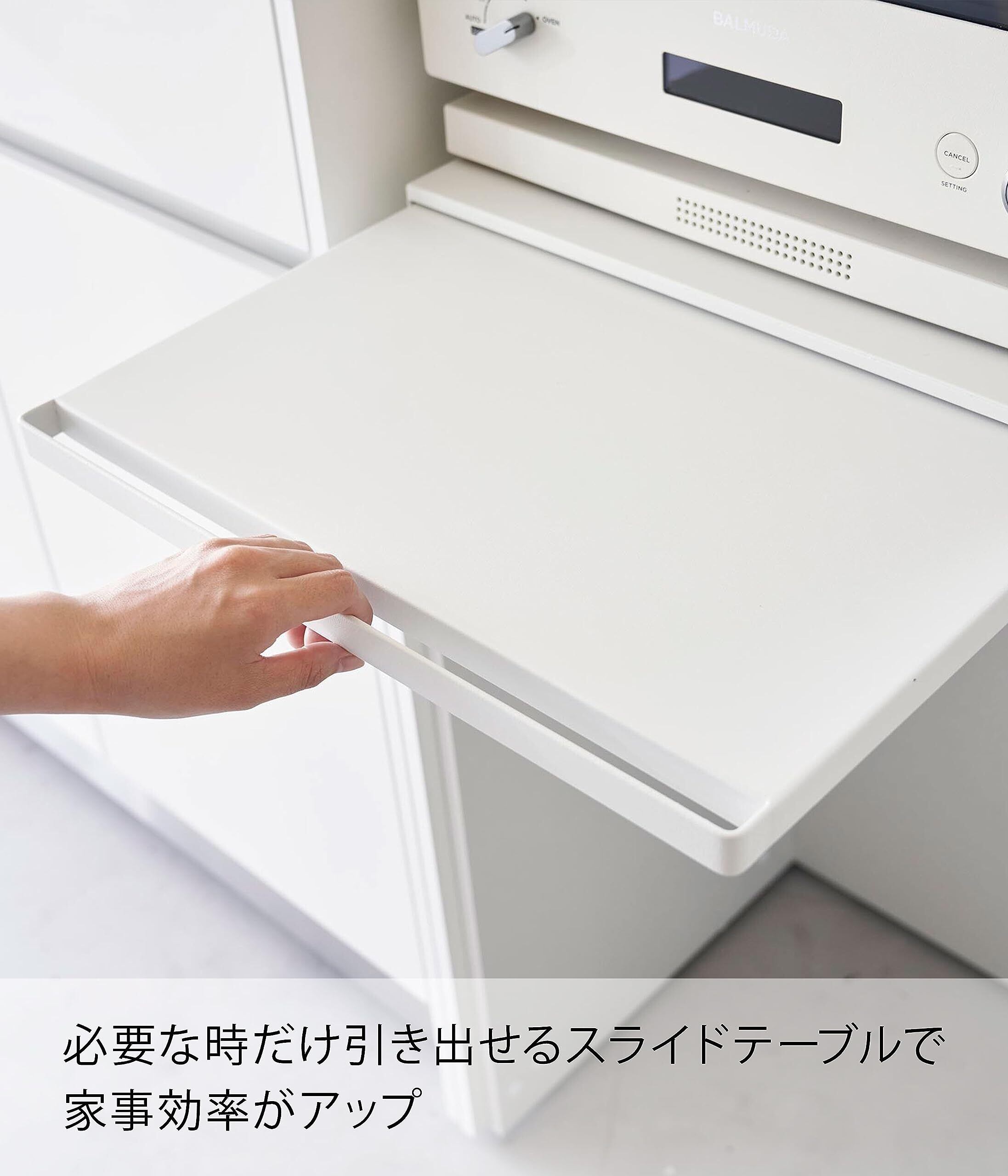 山崎実業(Yamazaki) 【 完成品 ストッパーのみ要取付 】 キッチン 家電下 スライドテーブル ホワイト 約W45×D39~64.5×H4cm タワー tower スライド棚 小物収納 ちょい置き 作業スペース 2105