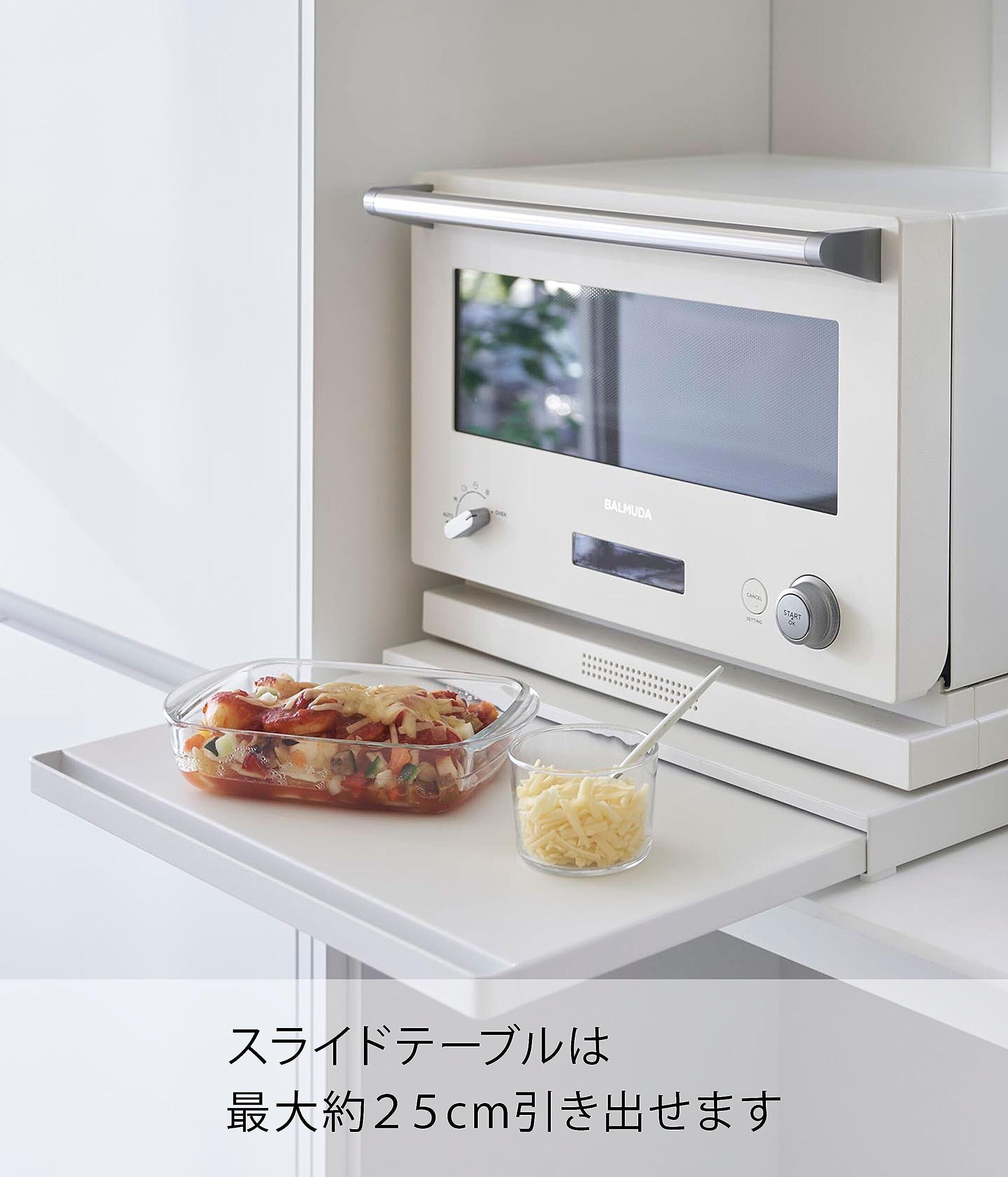 家電下に便利な作業スペースができるキッチンスライドテーブル。