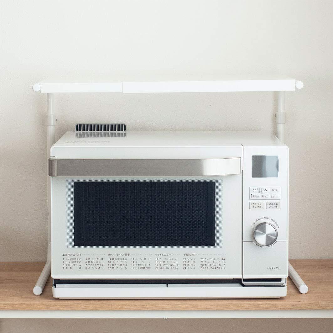 ●高さ・幅を伸縮させて調節できるので、お手持ち電子レンジに合わせてぴったりと無駄なく収納することができる