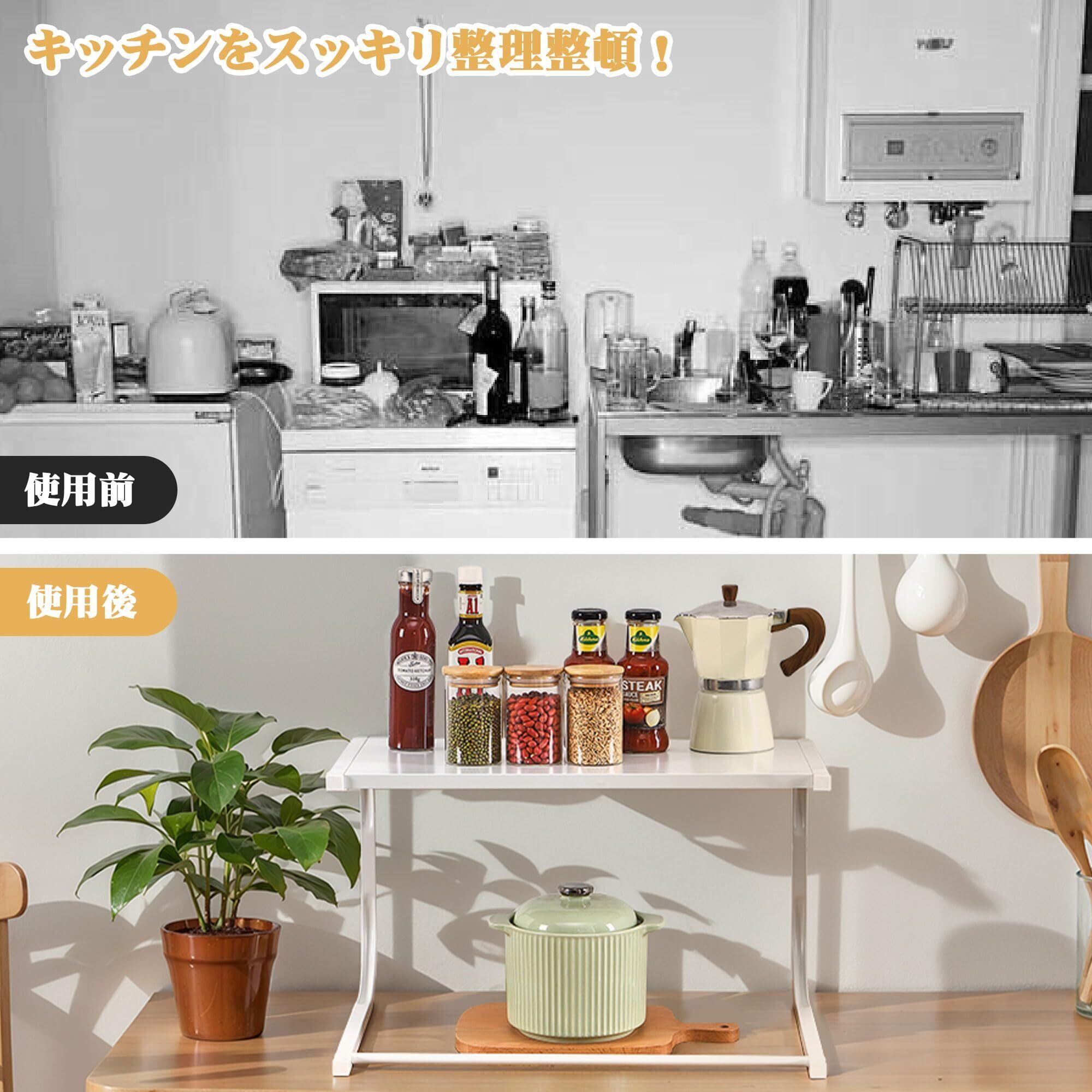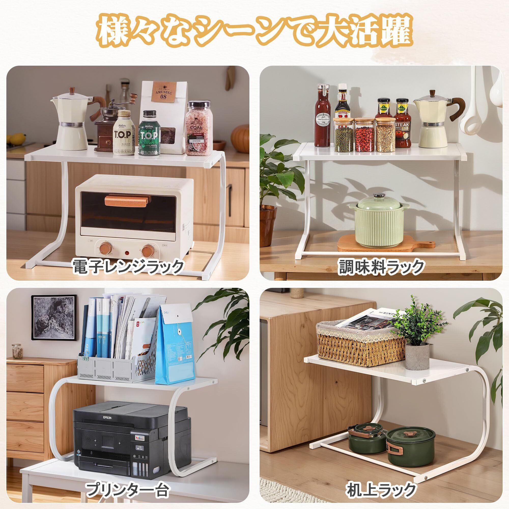 この電子レンジラックは、キッチンの収納力をアップし、すっきりとした空間を実現する便利なアイテムです。