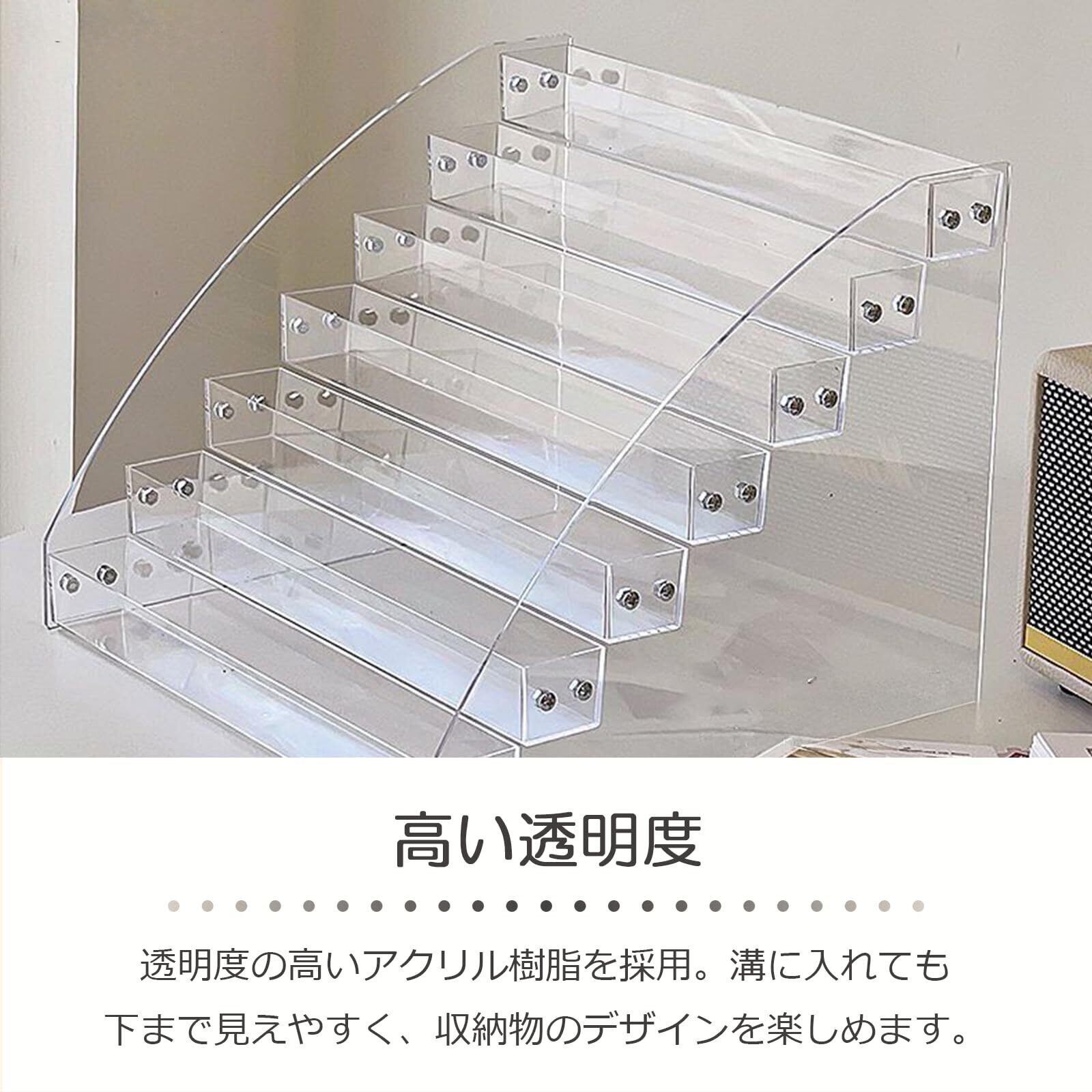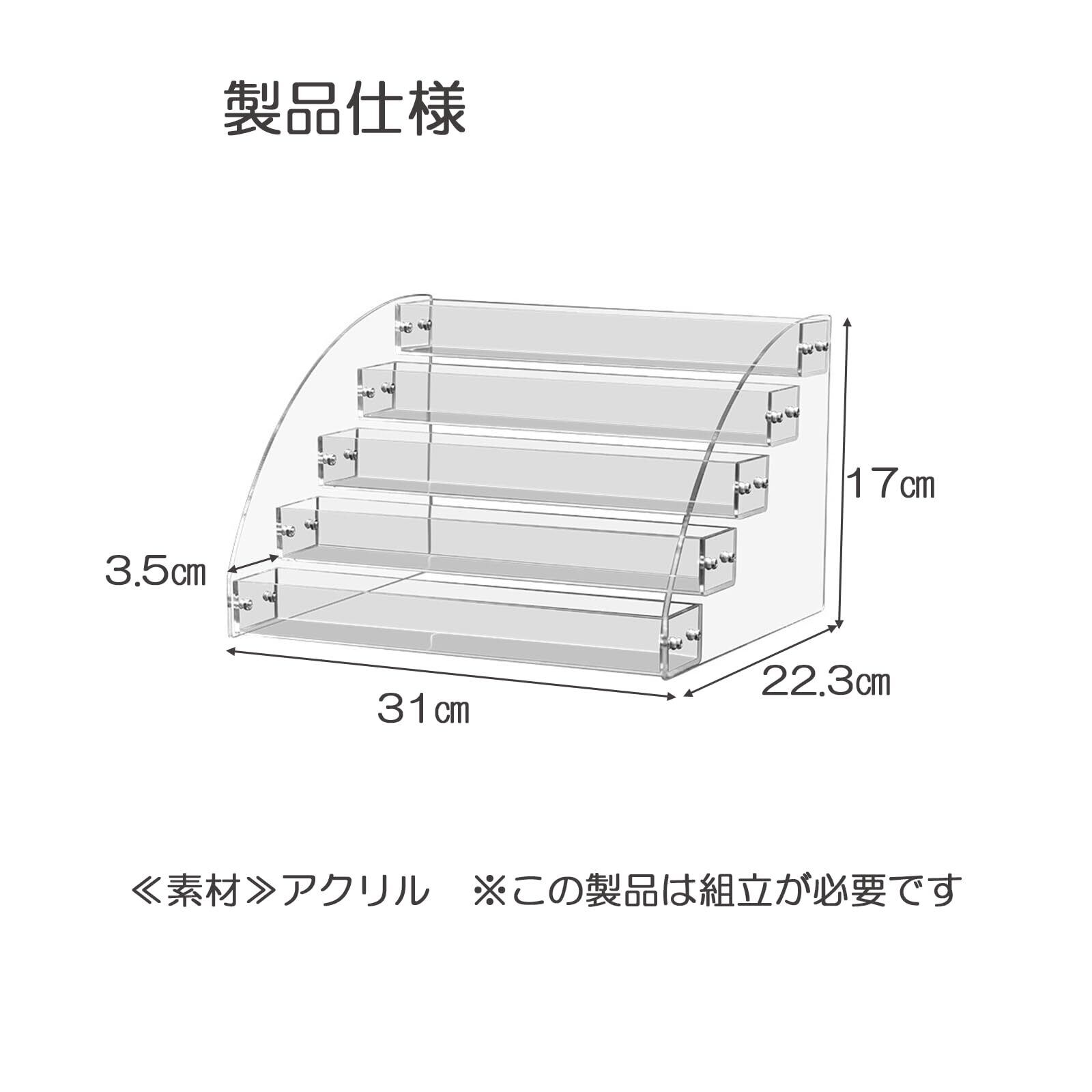 lifactlab. アクリル ディスプレイ 棚 溝付 化粧品 フィギュア 展示 台 透明 ひな壇 陳列棚 5段 幅31cmx高さ17cm
