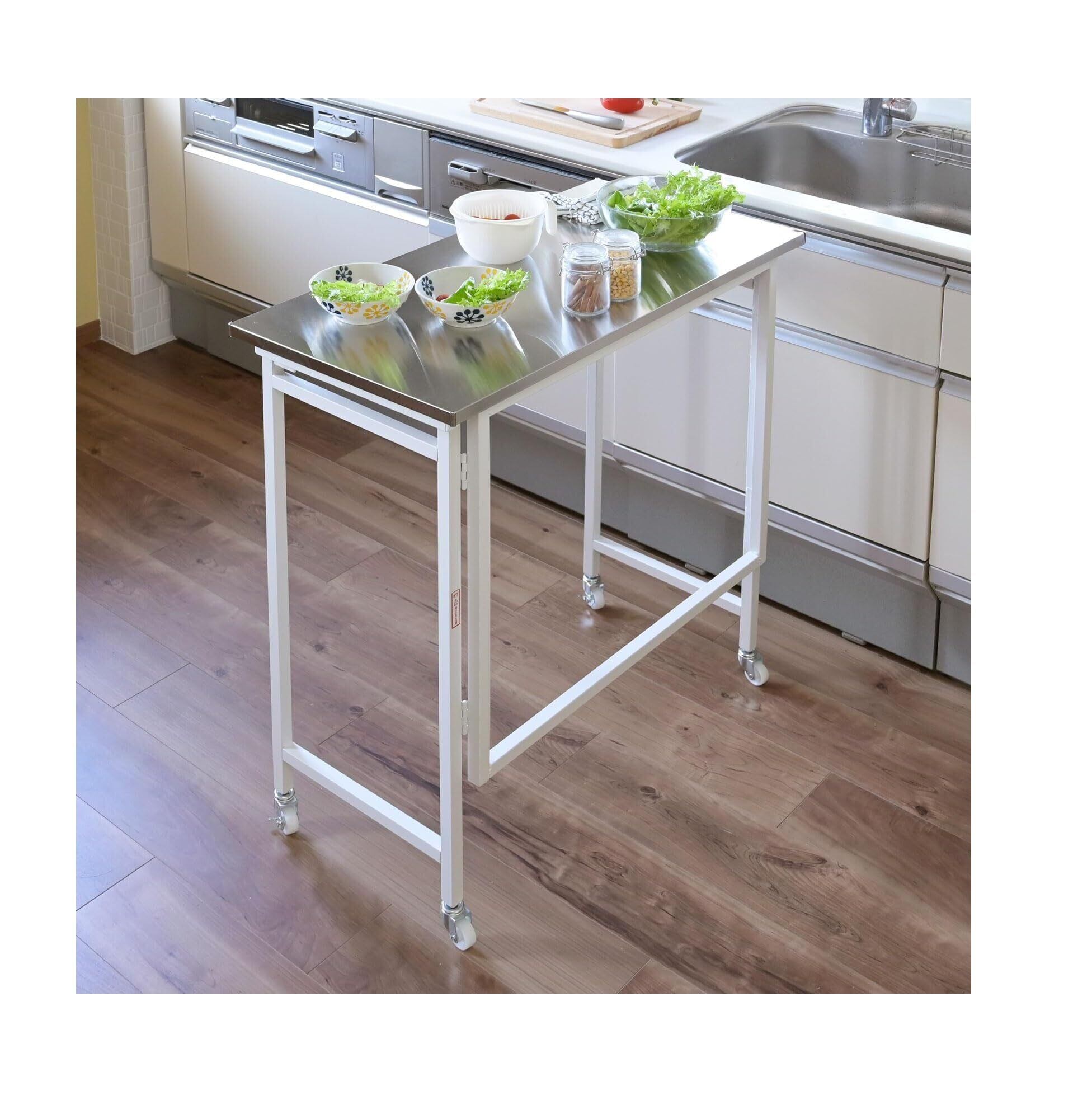山善(YAMAZEN) テーブル キッチンカウンター 折りたたみ 組立カンタン (ステンレス天板耐熱温度 : 200度) 幅80×奥行40×高さ85cm テーブル ホワイト RPSST-8040C(WH)