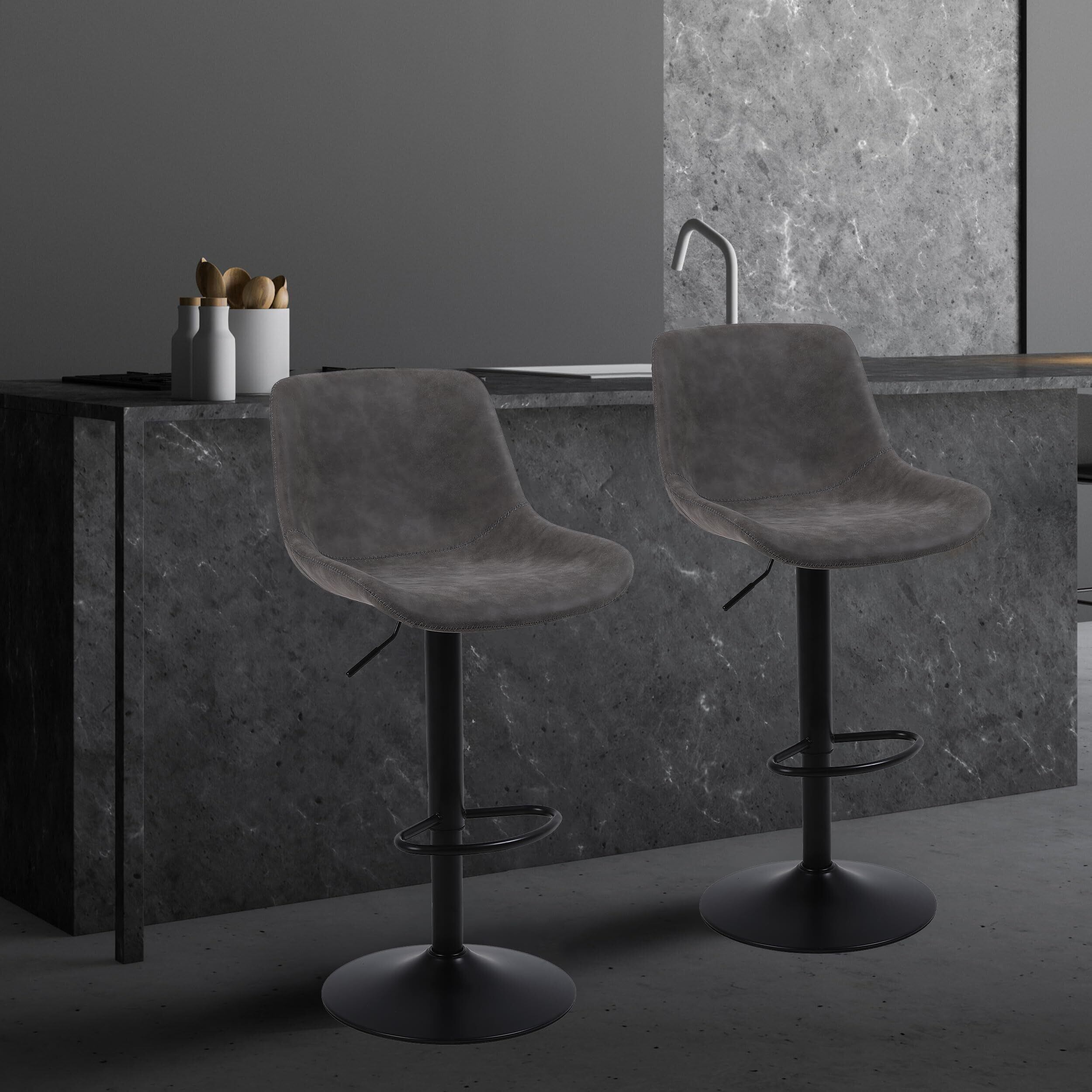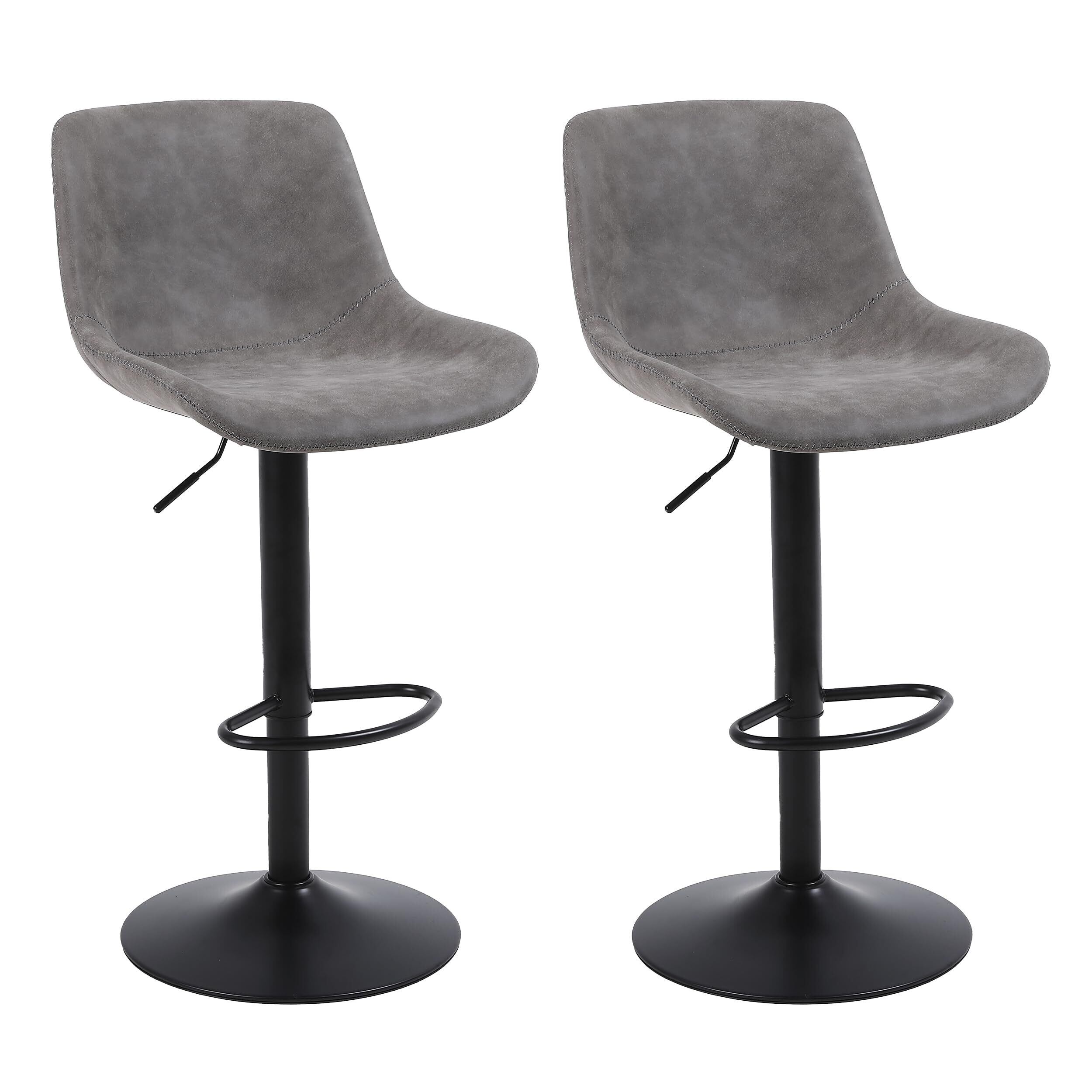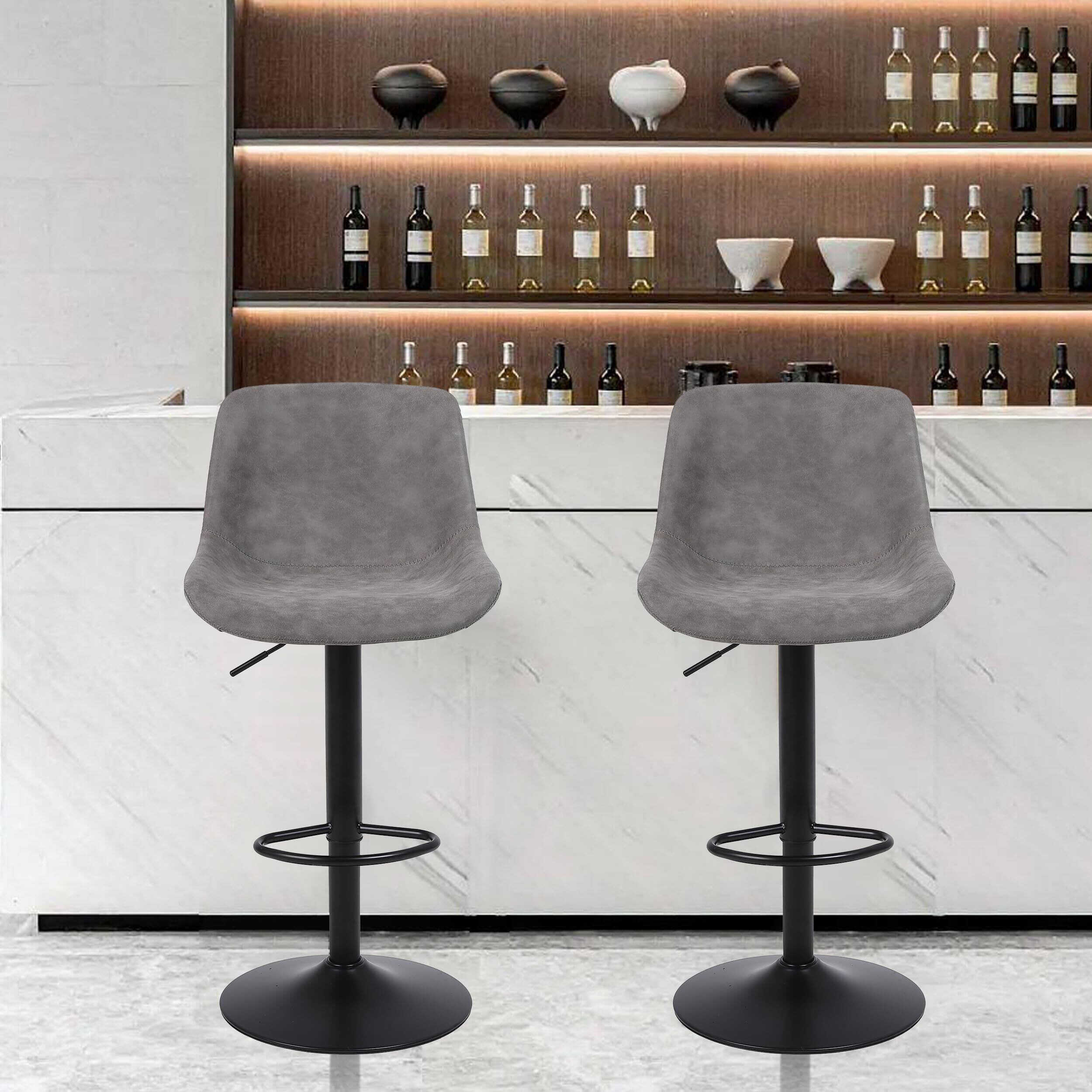 Ermnois カウンターチェア 回転昇降バースツール PUレザー ハイチェア 背もたれバーチェア キッチン 回転椅子 ハイスツール 足置き 高さ調節可能 キッチンカウンターチェア 2脚セット-グレー