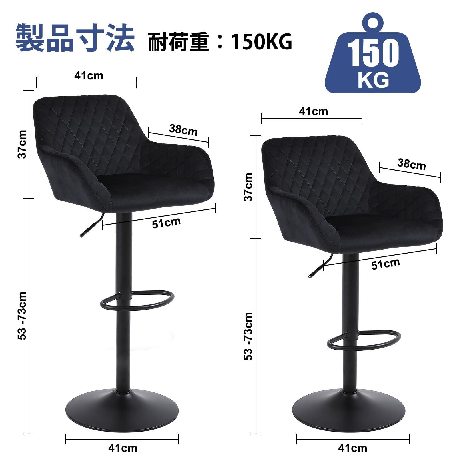 優れた仕上げ加工:高密度の厚いクッションと高級感のある柔らかなベルベット生地が快適な座り心地を実現します。このバースツールセットは、最大150キロまで耐えられる細身で頑丈な金属フレームを備えています。