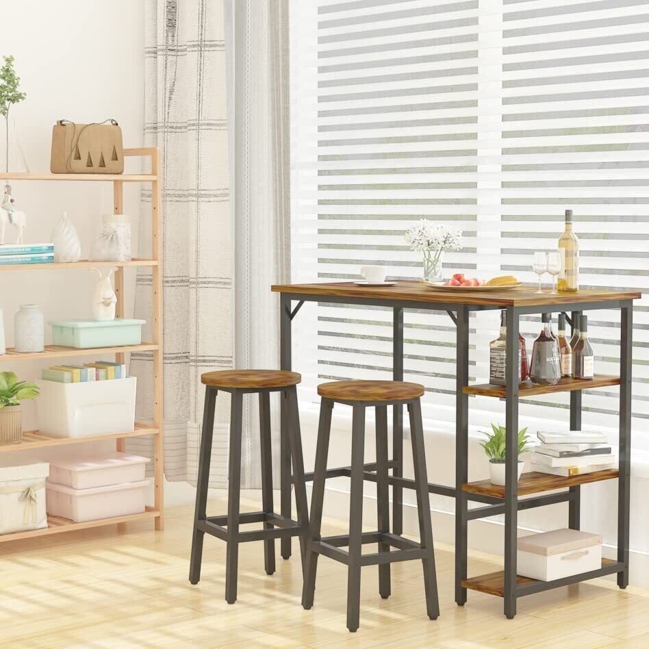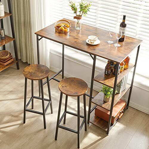 YMYNY バーチェア バースツール 4個セット フットレスト付きの工業バーチェア キッチン朝食バース 木製外観 金属フレーム付き 幅30×奥行30×高さ70cm 茶色 JPHTMJ510H-2