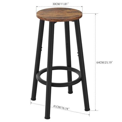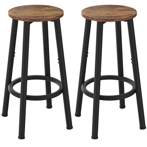 YMYNYバースツール2脚セット、フットレスト付きキッチンスツール、ブレックファストバースツール、ラウンドバーチェア、ダイニングルーム、キッチン、バー、パーティー用64CM高さスツール、ラスティックブラウン30×30×64CM JPHBS512H