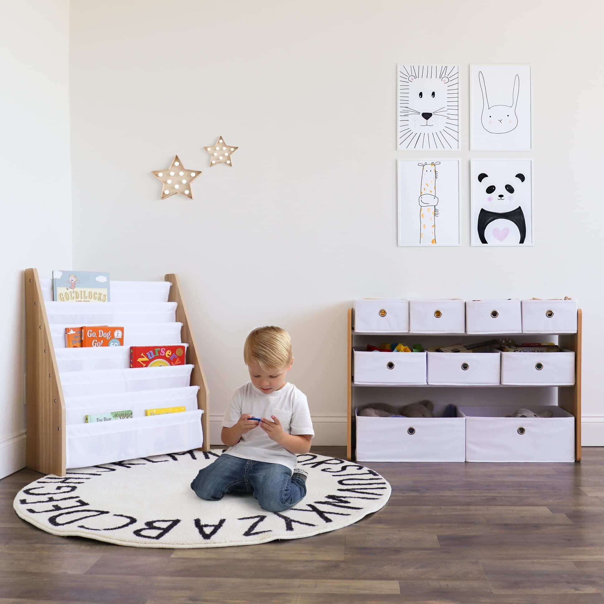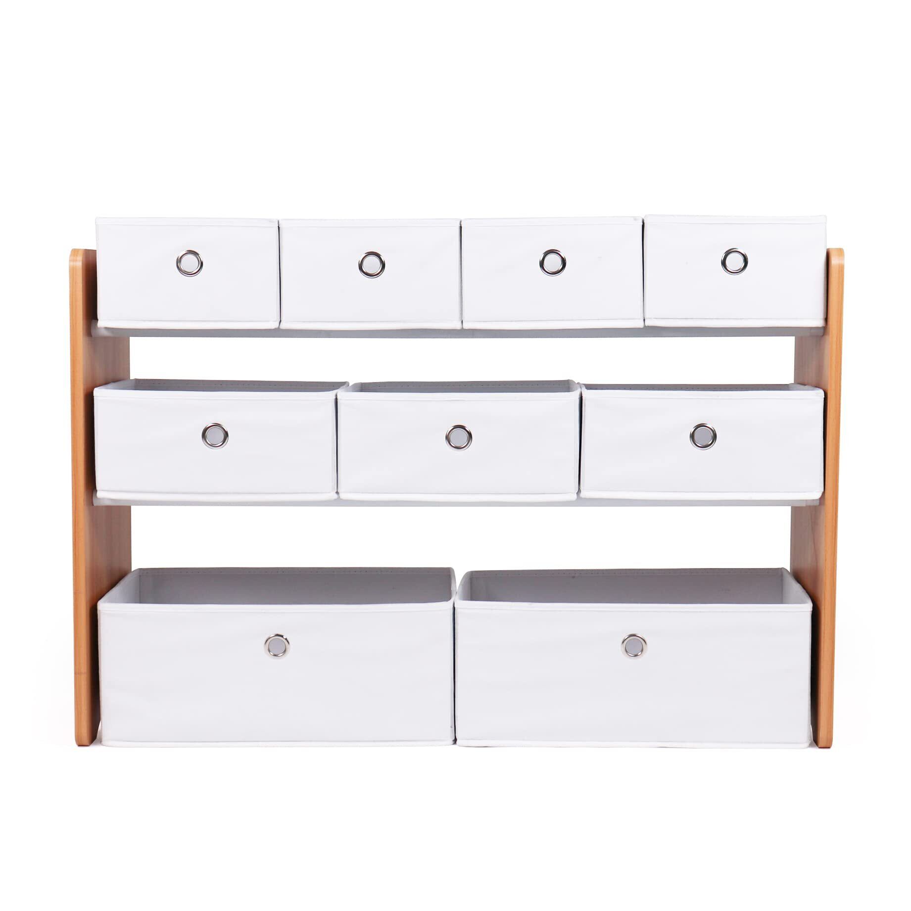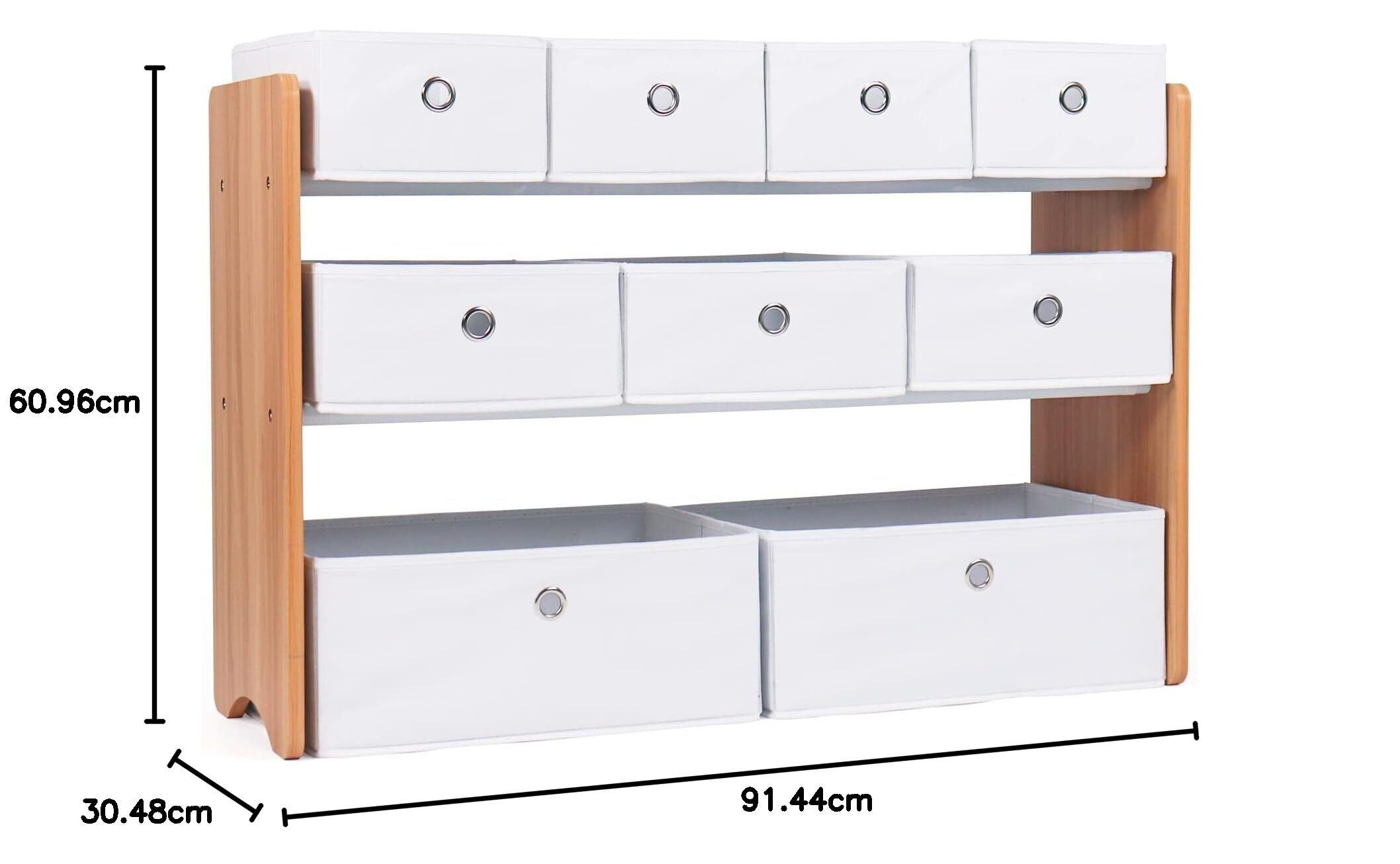 ハンブルクルー(Humble Crew) 子ども用おもちゃ収納オーガナイザー ナチュラルウッド ホワイト 折りたたみ可能な布製収納箱9個付き 幅91×奥行き30×高さ61cm 【日本正規輸入品】 WO76849