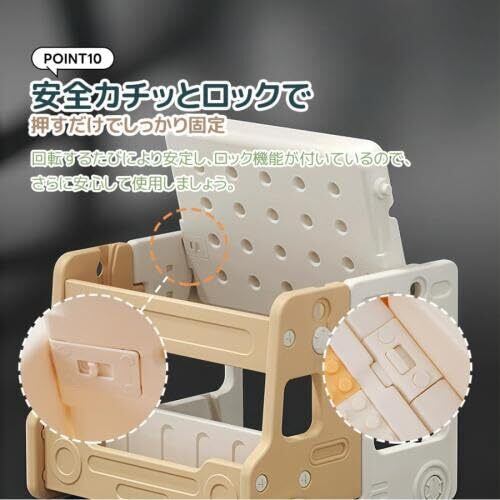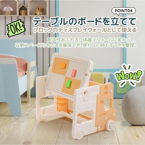 01多機能子供テーブル&チェアセット 使わないときは折りたたんで収納でき、空間をもっと自由に 絵かき&ブロック両用 フラットタイプ 傾斜 タイプ 直立タイプ 絵本ラック付き 耐荷重:耐荷重:チェア:35㎏ テーブル:45㎏ モデル身長:90㎝ 適応ブロック:大きめのブロック(例:レゴ デュプロシリーズ)に対応します。 3〜7歳のお子様向けのチェア 軽量ながらしっかりした作りのチェアは、移動も簡単で安全。 ◆02遊びが広がる多機能一体型 子どもの最高の遊び仲間 絵かき&ブロック両用テーブル板 回転して他の形になり1.ブロック板 1.ブロック板 2.絵描き板 3.収納スペース 4.絵本ラック 1.フラットタイプ 2.傾斜 タイプ 3.収納タイプ 折りたたむととてもコンパクトになり、狭い隙間や収納スペースにもすっきり収まります。 ◆03大きめサイズのブロックに対応し 組み立てやすさ抜群 小さな子どもにとって、誤飲の心配も少なく、安全に遊べます。 遊びを通じて、手先の器用さや想像力を育てる最良の方法です。 粒間の隙間:6.5mmくらい 適応ブロック:大きめのブロック(例:レゴ デュプロシリーズ)に対応します。 ◆04テーブルのボードを立てて ブロックのディスプレイウォールとして使える 創造性あふれる立体展示ウォールに変わって、収納スペースもそのまま確保でき、使わない時もすっきり整理。 ◆05水性ペン専用の磁気お絵かきボード 絵を描いて消して、何度でも楽しめます! 色や形を自由に描くことで、感情を表現したり、思考力や集中力を高めることができます。 ※水性ペンは撮影用の道具で、実際の商品には付属しておりません。 ※絵描きボードを使用する前に、表面のフィルムを剥がしてください。 ◆06磁気吸着で物が滑りにくく 教育に手伝います 教具が簡単に取り付けられ、教育サポートがスムーズに行えます。 ◆07テーブルのボートを取り外すと 収納スペースが現れ 使わないブロック、絵本、ペンなどすべてすっきり整えます。 ◆08机と本棚が一体化したデザインで 整理整頓が楽しく身につきます 勉強テーブルと本棚の組み合わせで、学習スペースがすっきり整頓されます。使い終わった後、自然に本や文房具を片付けることで、子どもにとって整理が楽しい習慣に変わります。 ◆09安全カチッとロックで 押すだけでしっかり固定 回転するたびにより安定し、ロック機能が付いているので、さらに安心して使用しましょう。 ◆10 EN71規格のテストに合格し 安全性が確認された製品です ヨーロッパの子ども向け安全基準EN71規格のテストに合格しており、お子様にも安心してご使用いただける製品です。 ◆11細かいところまでこだわり 組み立て簡単 一人でも楽に完成します。 滑らかな曲線デザイン お子様の安全をしっかり守ります。 科学的な設計に基づき 強固で安心して使える製品です。