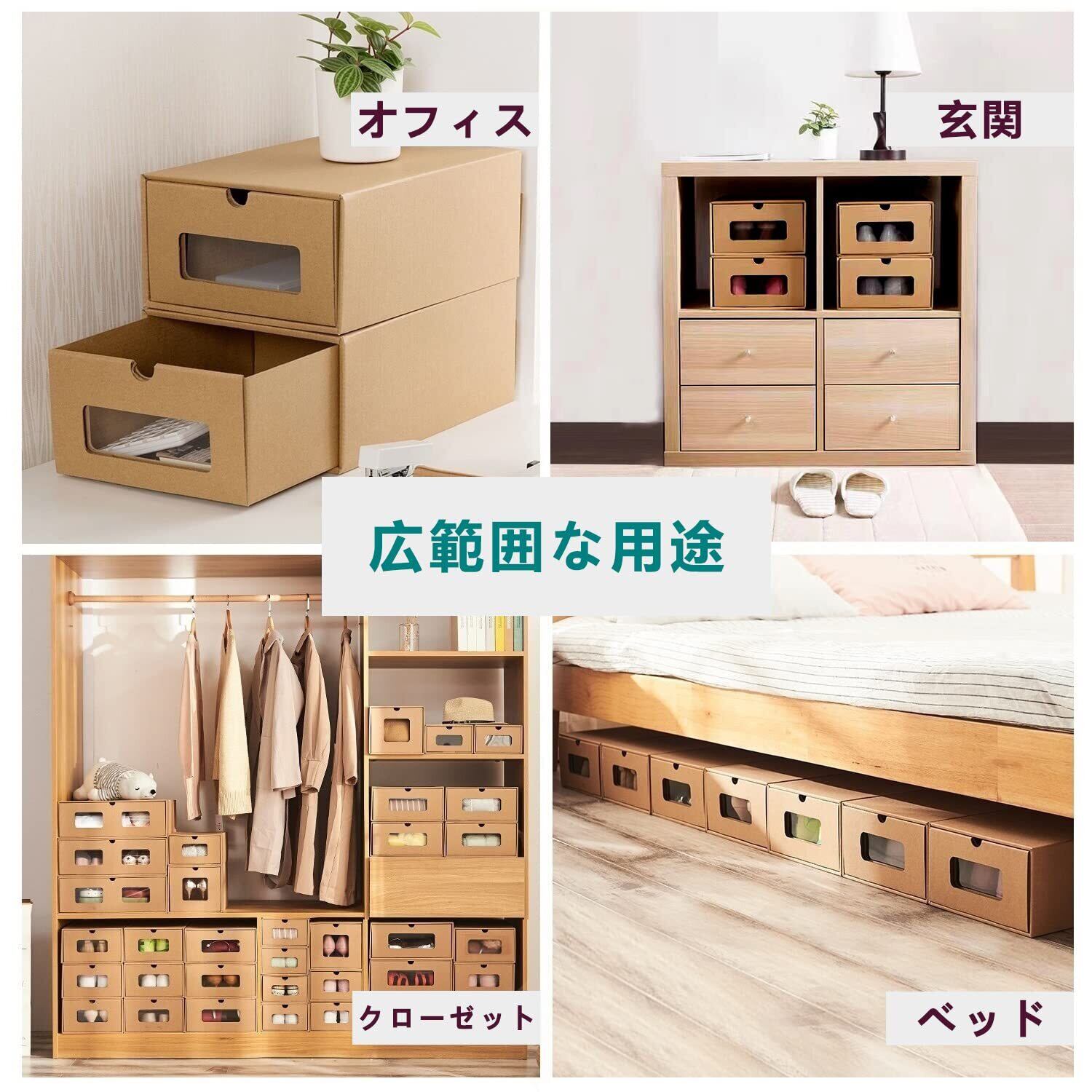 【高品質の素材&積み重ねる可能】高密度環境に優しい段ボール紙の材料は、強い耐荷重、安定した立って、揺れ、全体のデザインはシンプルでエレガントで、美しく実用的です。箱を積み重ねることが可能、使わない時には折り畳んで、コンパクトに収納できる。引き出しタイプですので、積み重ねだ時にも手間なく出し入れできます。とても便利です!