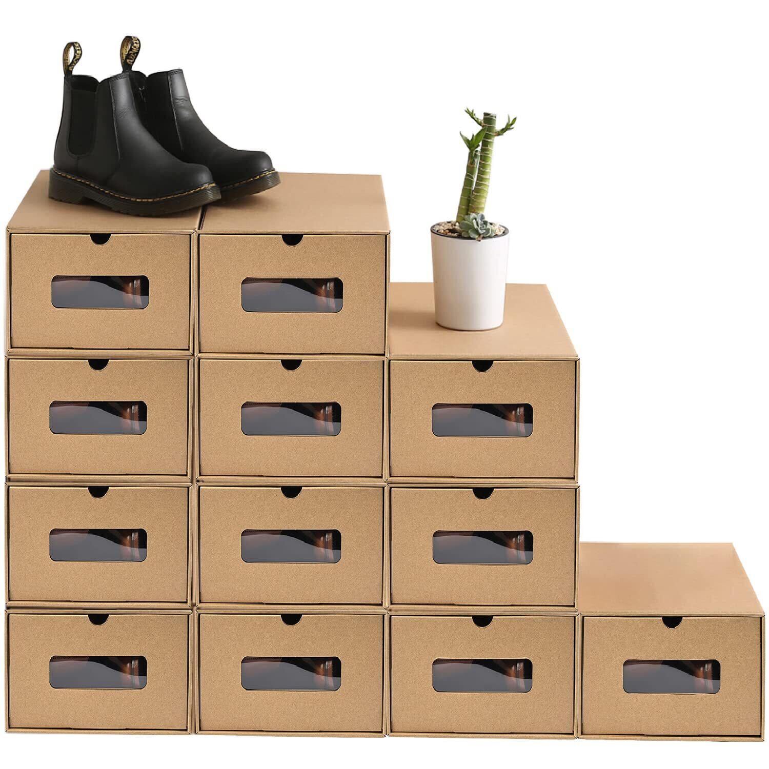 12個セット シューズボックス 靴箱 靴 収納 ボックス 下駄箱 靴収納 おしゃれ インテリア シューズケース コレクション 展示 組立 shoes box (ブラウン)