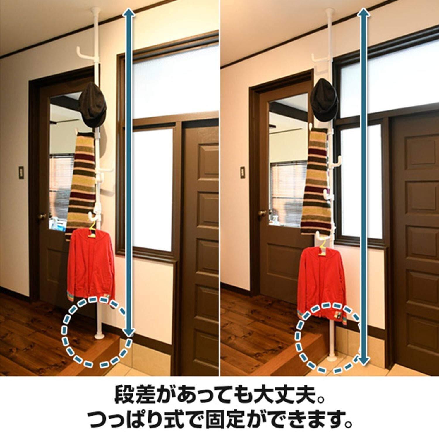 ●ワンタッチ固定装置で簡単取り付けできる、つっぱりハンガーラック。