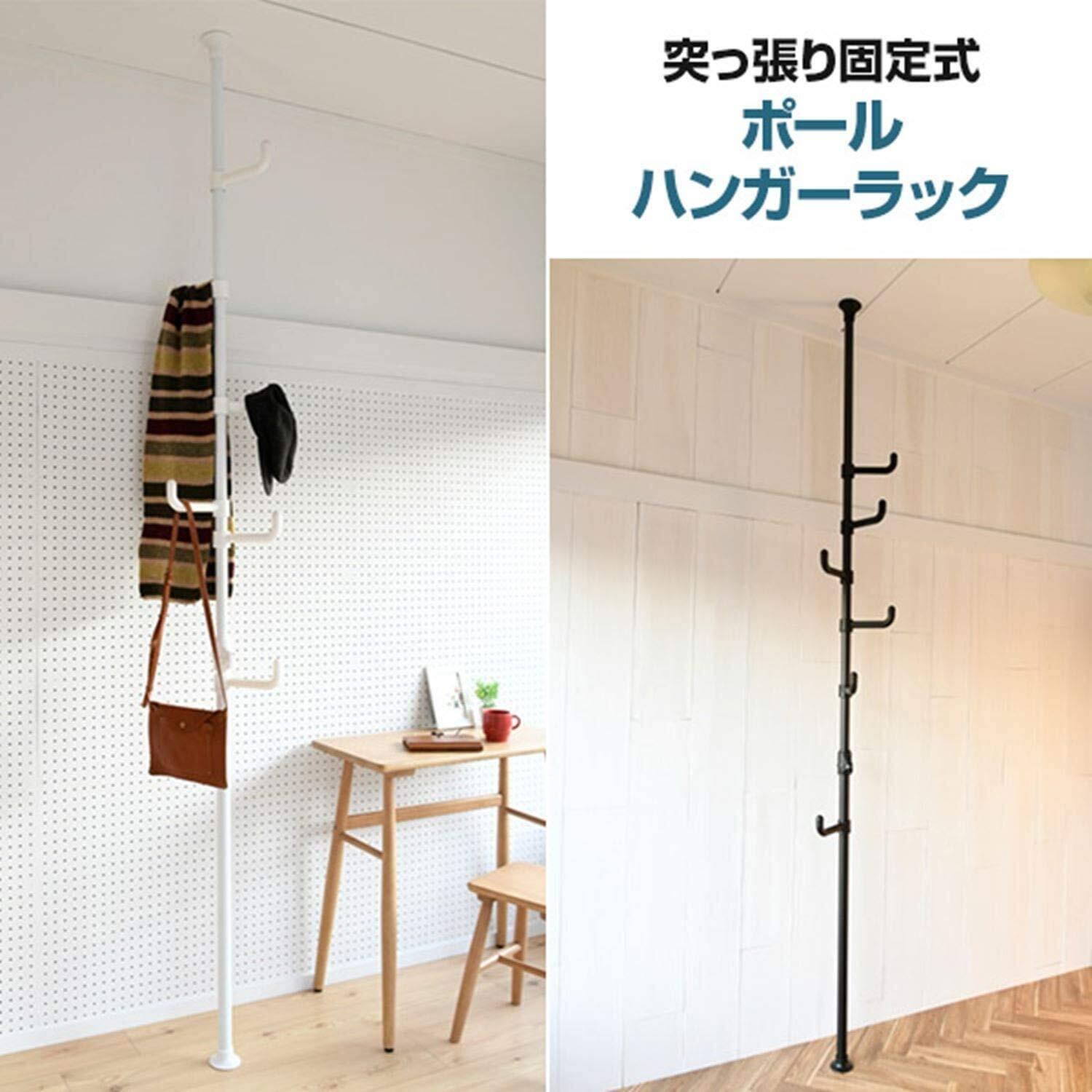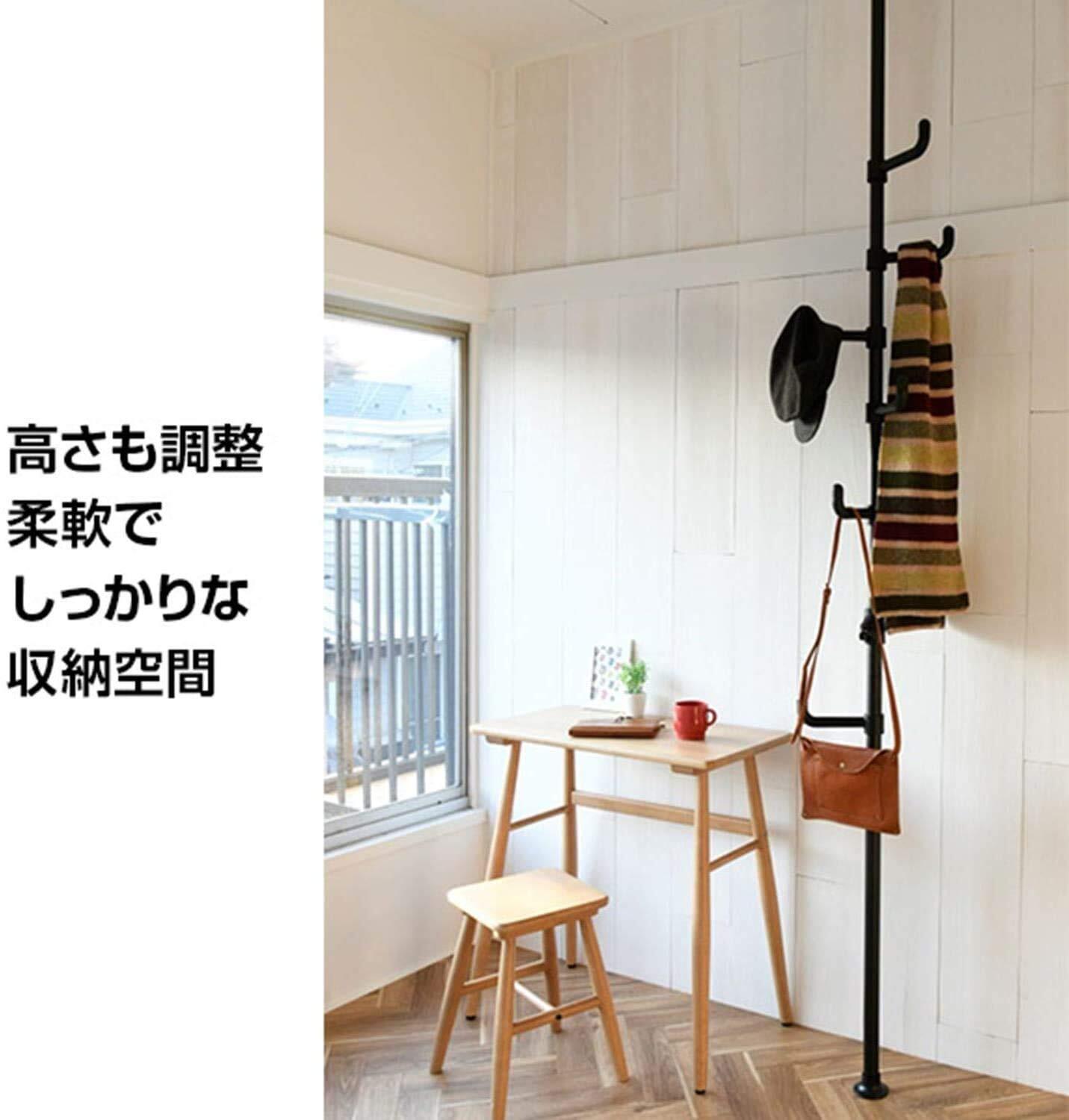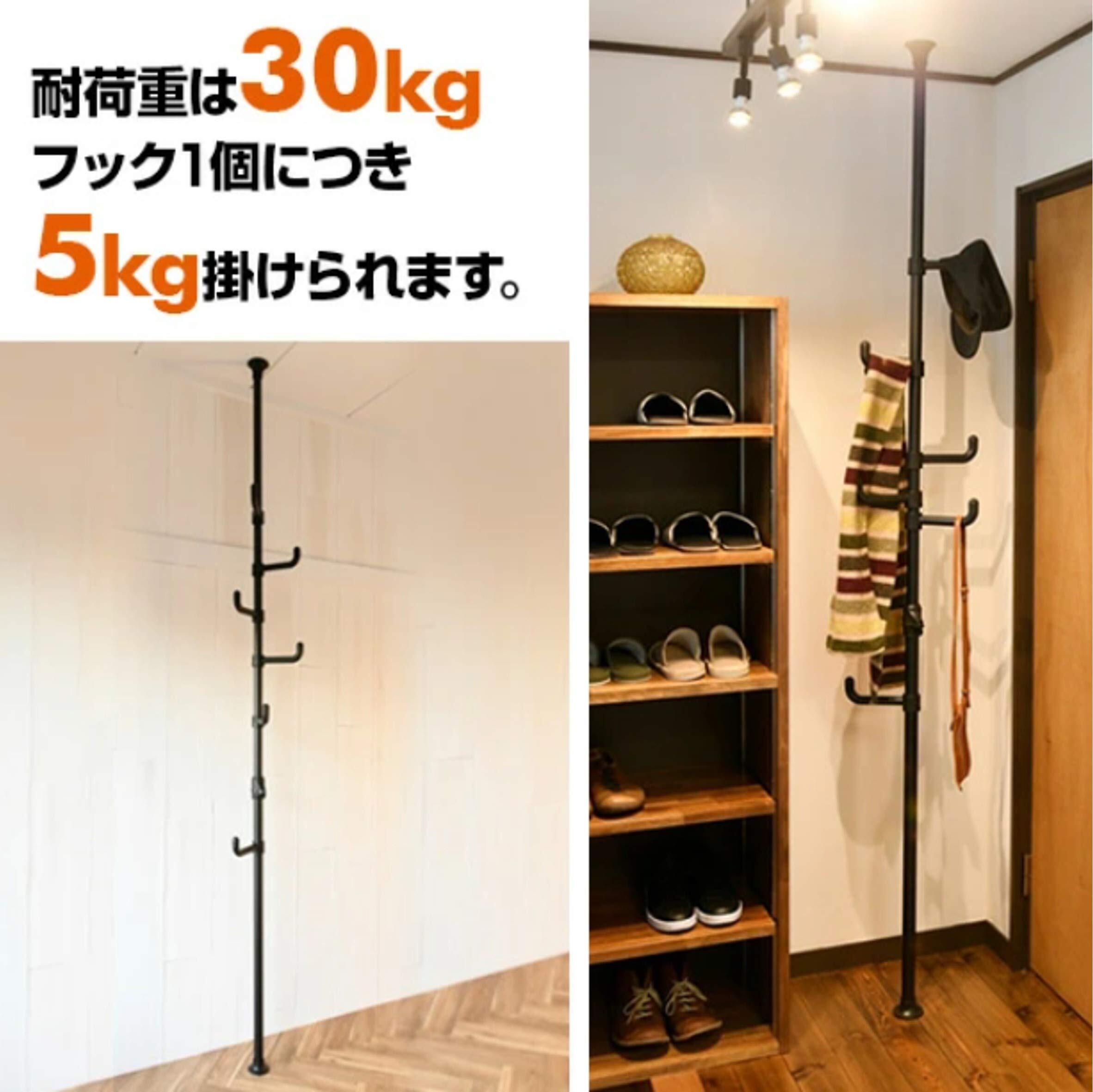 山善(YAMAZEN) 突っ張り ポールハンガー 隙間収納 高さ伸縮 耐荷重30kg ワンタッチで設置(実用新案取得済) コートハンガー 衣類 収納 直径32×高さ140-280cm 組立品 マットブラック WJ-725M(MBK)