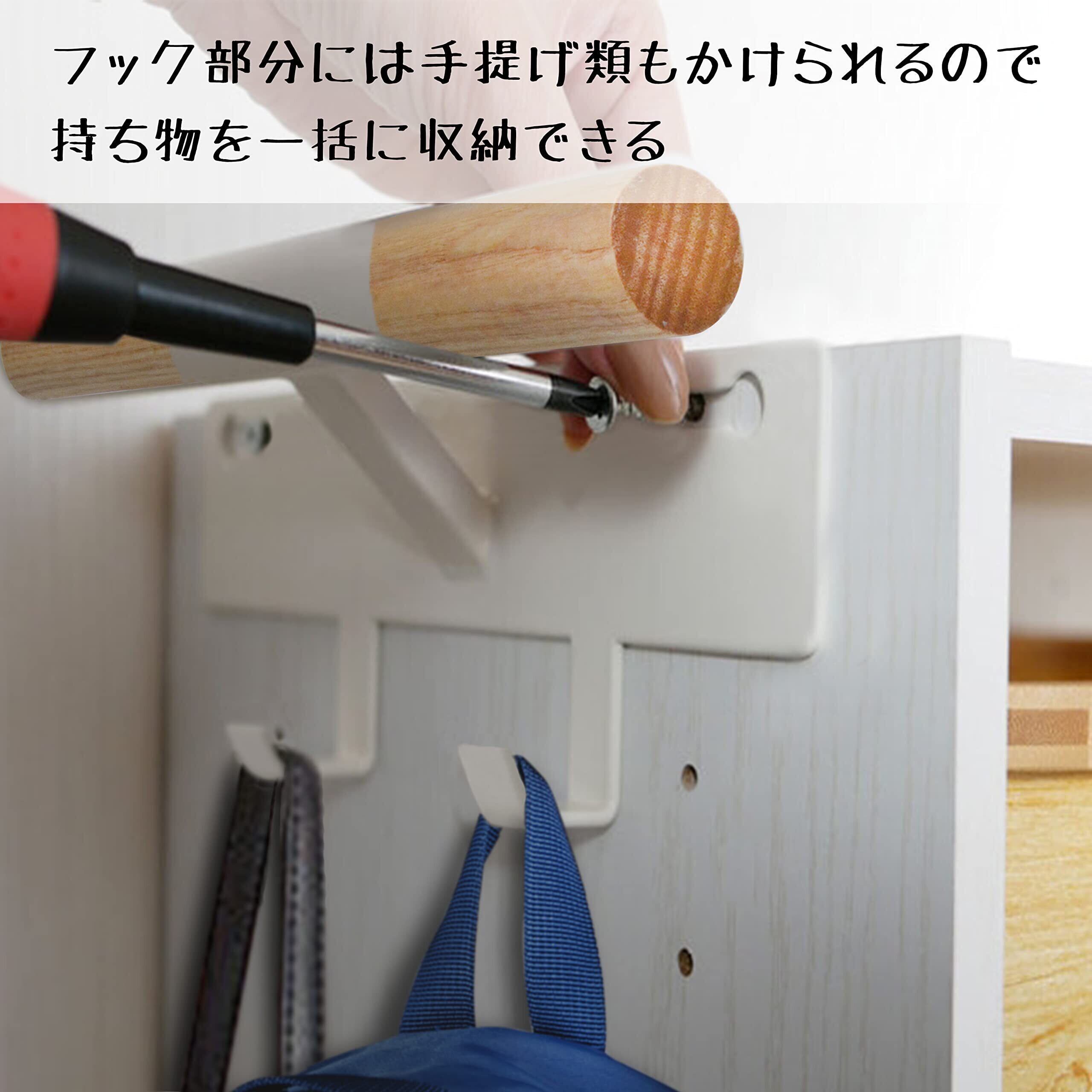 【幅広い使用場所】カラーボックス横を利用するだけではなく、壁、キッチン、リビング、玄関、デスク、子供部屋など場所を選ばずに使えます!リュックハンガーはネジが付いてそのまま使え、取り付けも便利です。