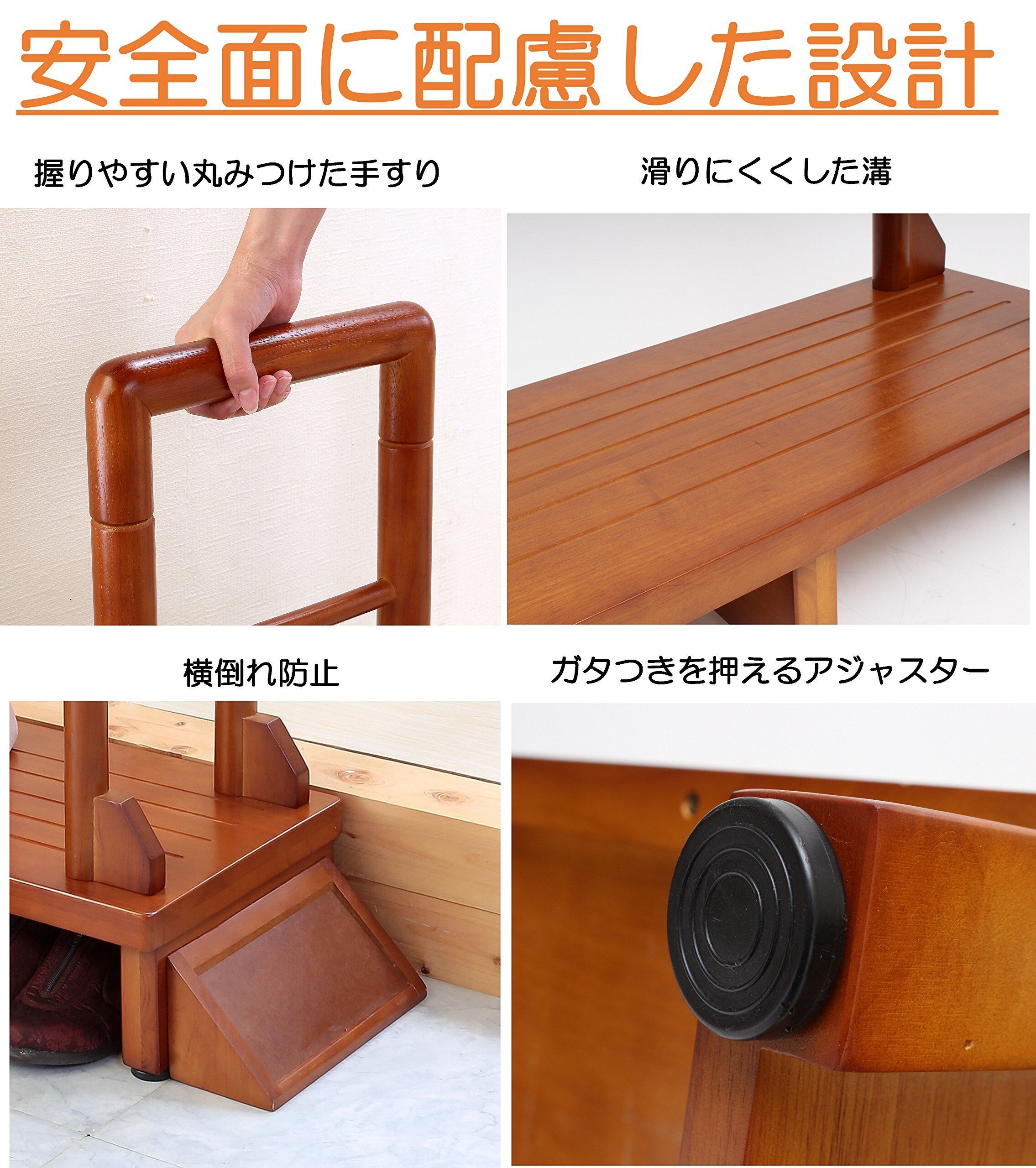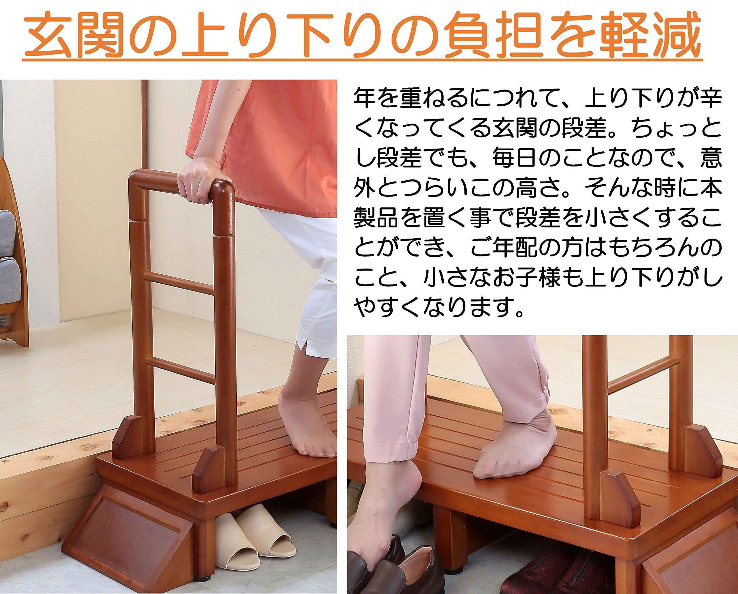 ビータ(Vita) 手すり付き玄関台 ブラウン 幅70×奥行35×高さ78cm 幅60cm つらい段差に 上り下り負担軽減 横倒れ防止 アジャスター付 スリップ防止