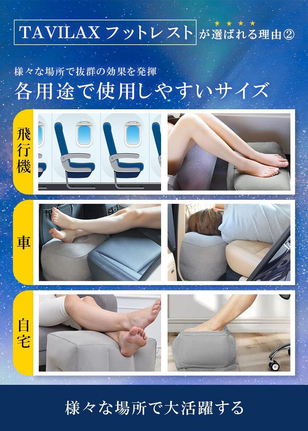 [TAVILAX] フットレスト 飛行機 【るるぶ掲載&現役CA監修】 快適グッズ 車 足枕 足置き 車中泊マット (グレー)