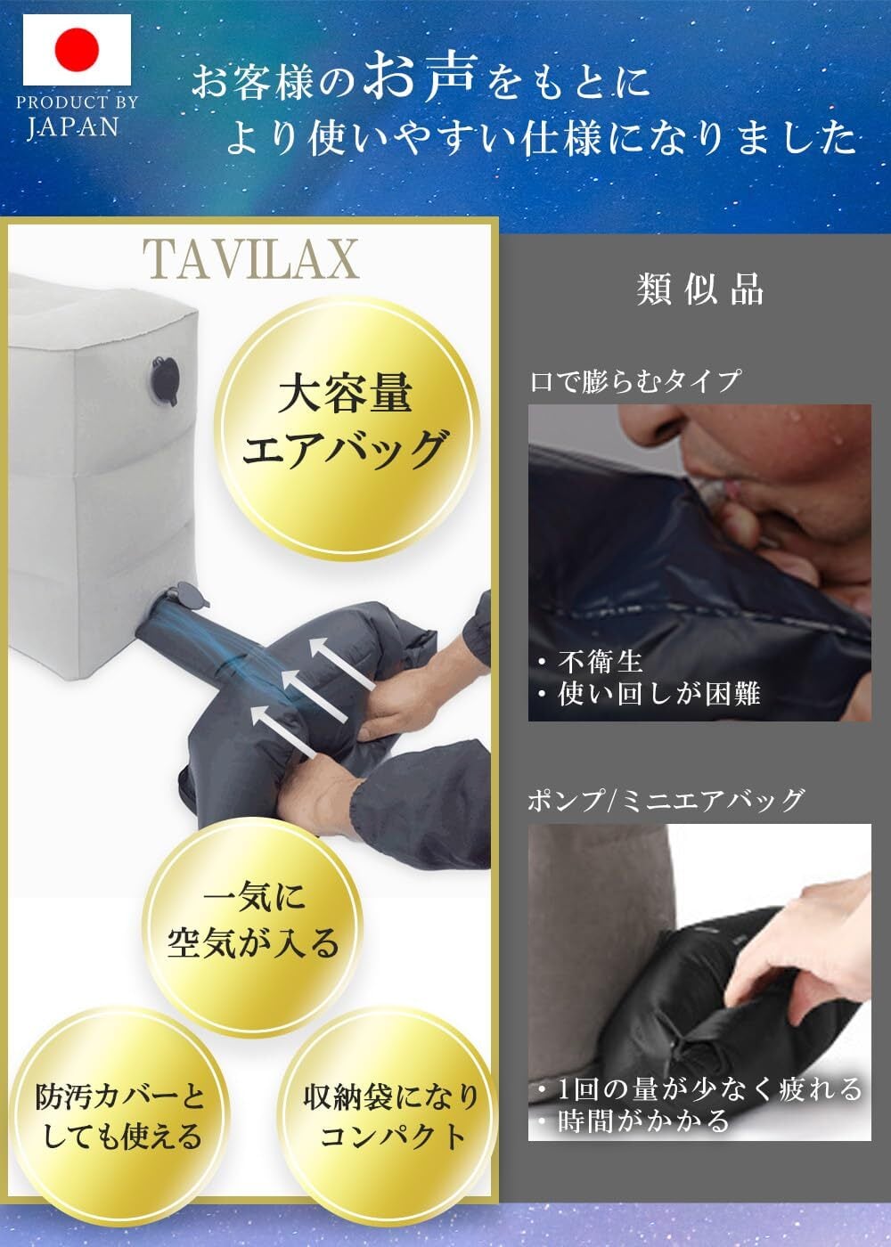 【ちょっと贅沢な移動時間】旅行や外出の移動を快適に過ごせるだけでなく、ゆとりのある姿勢を保てることで、心までリラックスし贅沢な移動時間を過ごせる足枕。TAVILAXが満を持してご提供する旅行便利グッズ。