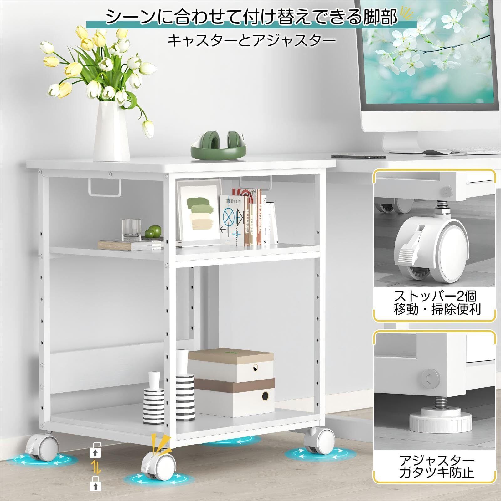 【普通のデスクと同じな高さ70cm】 一般的なパソコン・机・デスクと同じ高さ70cmなので横で並べて使用でき、サイドデスク、コのデスク、L字デスク、サブデスク、pcワゴン、pcラック、パソコンラックとしても活躍されます。中棚の高さは5cm間隔で7段階調節が可能です。ご利用のシーンお及び収納物に合わせて高さ調節できます。※頻繁に移動する場合、キャスターの取付をご推奨いたします。