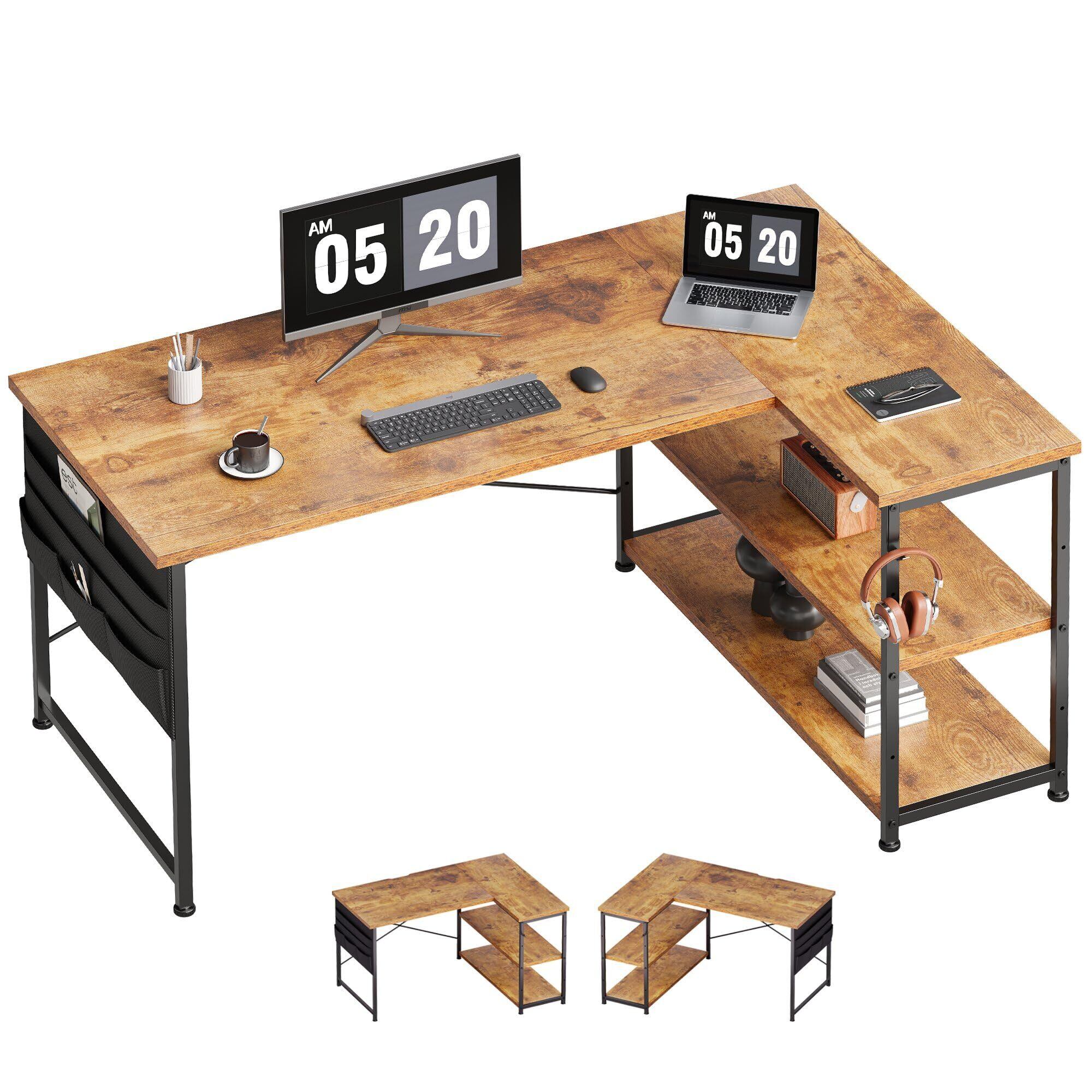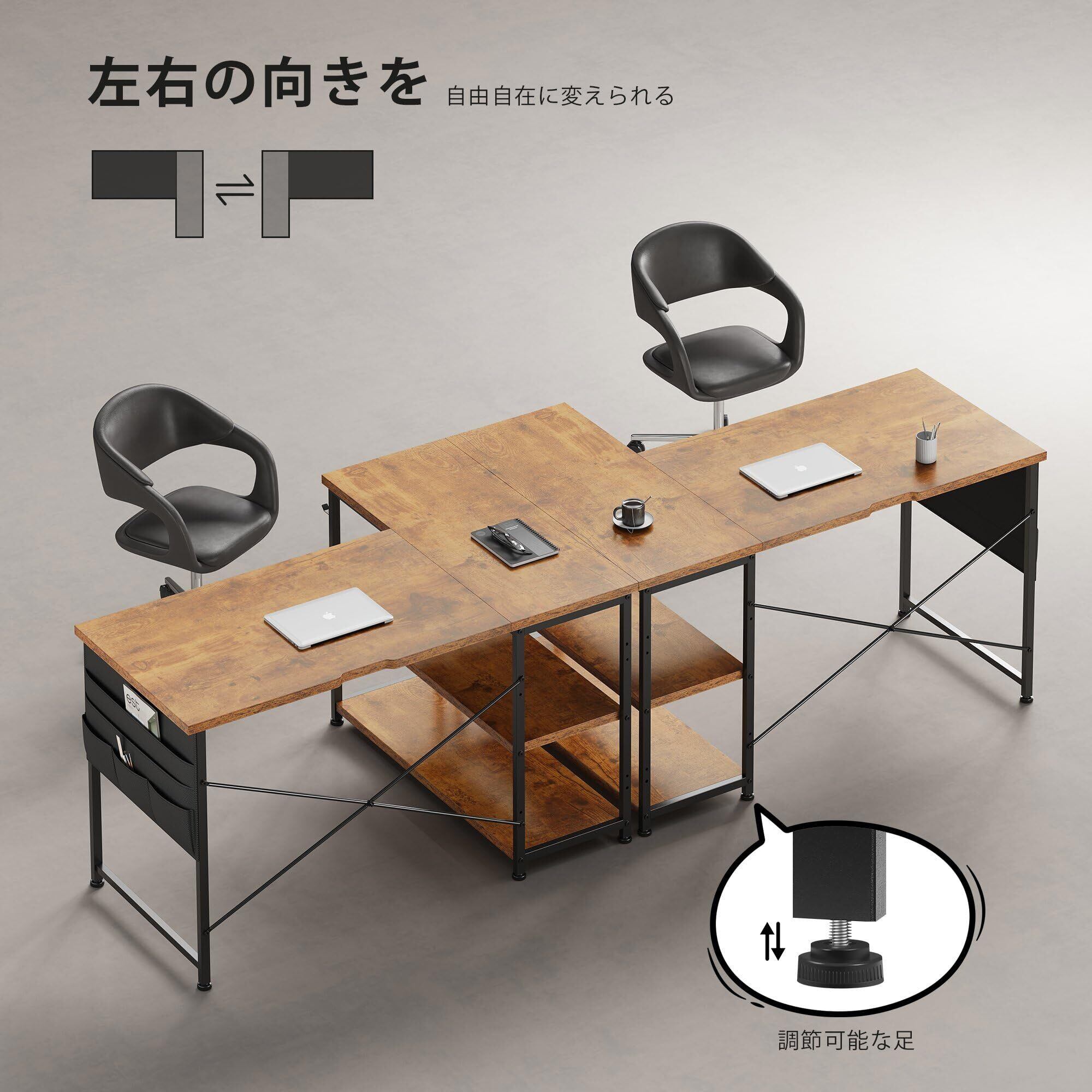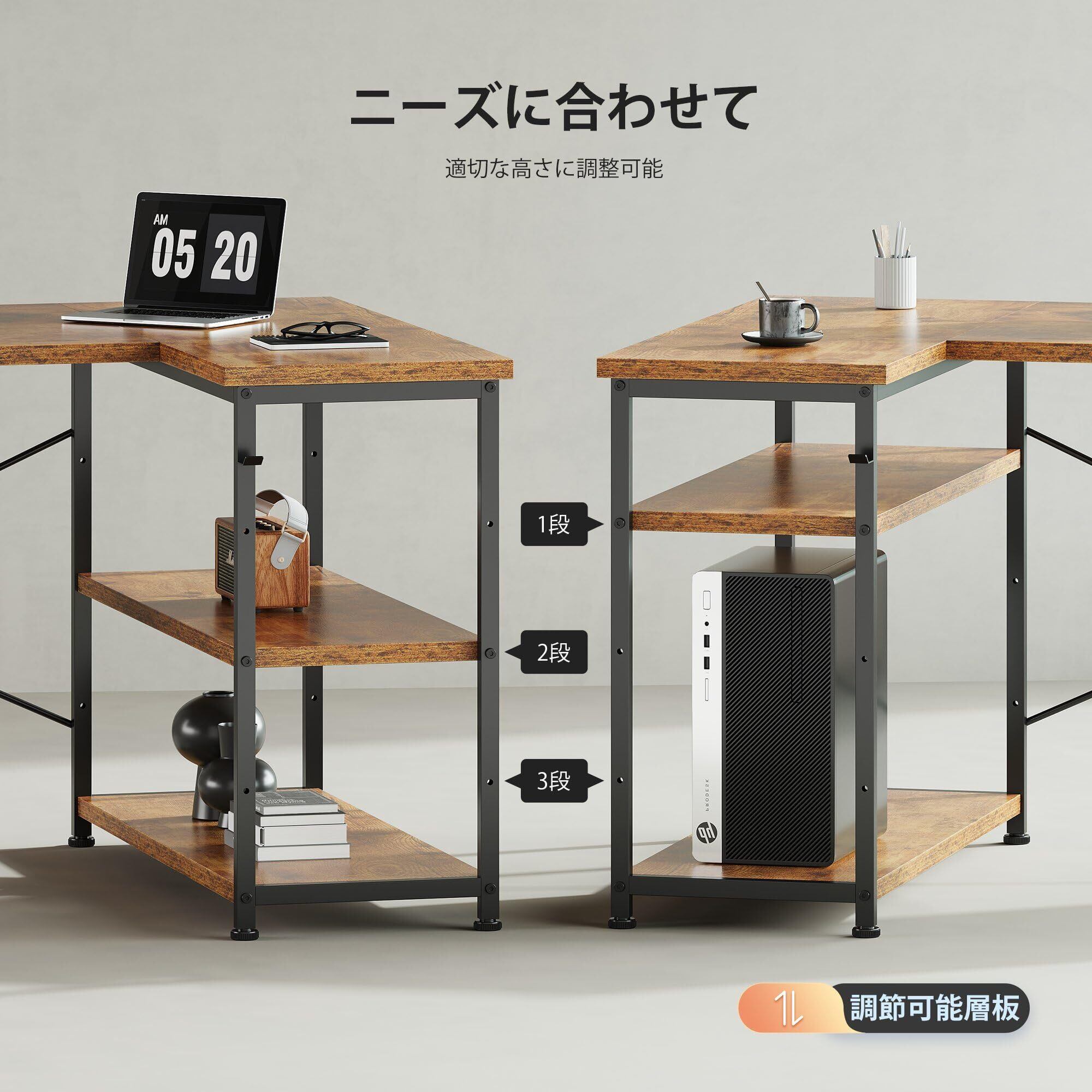 YeTom パソコンデスク 机 学習机 右棚左棚 幅107cm ゲーミングデスク l字デスク pcデスク 収納袋付き勉強机 コーナーデスク 本棚付き ビンテージ