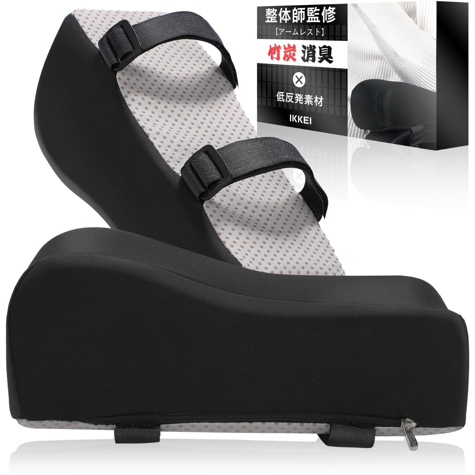 【理学療法士×整体師が監修】 IKKEI 肘置きクッション ひじ掛け 竹炭入り低反発素材 アームレスト 10㎝~7㎝(高め) 両肘セット