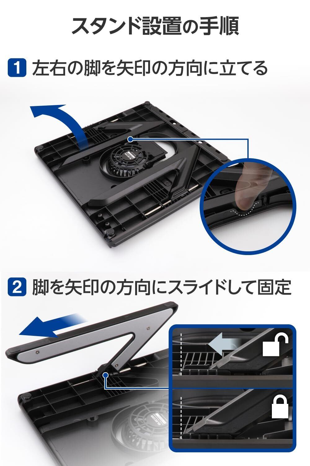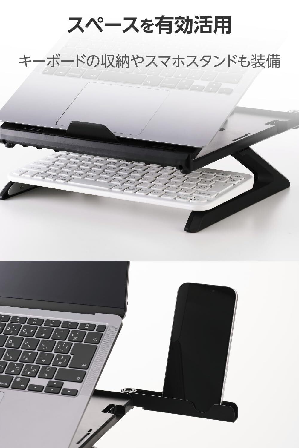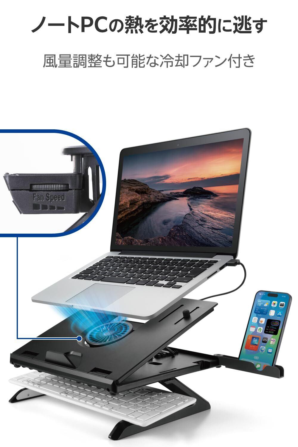 エレコム ノートPCスタンド 冷却ファン付き 折りたたみ 高さ8段階調整 スマホスタンド付き ~15.6インチ対応 ブラック PCAWLTSFANH8BK