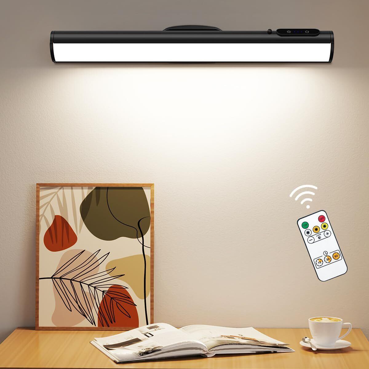 デスクライト LED マグネット 充電式 Hapfish 4000mAh 壁つけライト 磁石とリモコン付き 3種類色温と無段階調光 コードレス 明るい おしゃれ 角度調節可能 卓上 バーライト 読書灯 間接照明 勉強、クローゼット、壁、ドレッサーなどに適用【PSE認証済み 日本語説明書】