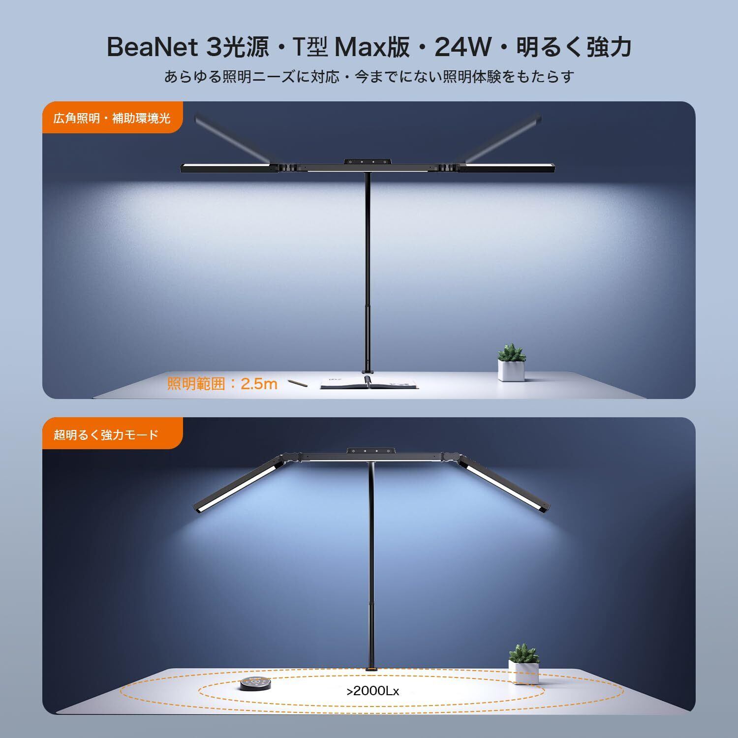 【3光源設計・T型Max版・幅980mm】BeaNet 24W LEDデスクライトは、216個の超高輝度LEDビーズを搭載した独特の3灯式設計です。明るく強力、幅広い照明がテーブルトップ全体を照らします。空間全体を同時に照らします。光は均一で柔らかく、ストロボも青い光も多重影もなく、目を保護する。消費電力:24W [PSE認証済]。
