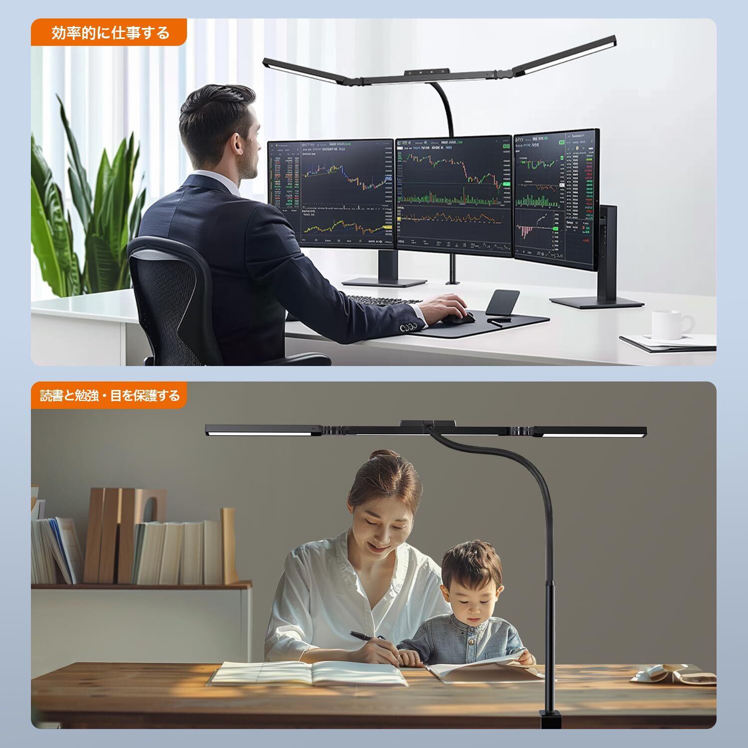 【無線リモコン・独立制御・調光調色】LEDデスクライトは無線リモコンで自由自在に照度と色温度を調整できます。主照明と副照明の明るさ(25%/50%/75%/100%)と色温度(2700K/4000K/4800K/5700K)を独立して制御できます。演色性指數はRa90、自然光に近い光を照らし、正しい色が見えます。夜間に仕事や勉強をするのにとても便利だ。子供と大人に適しています。