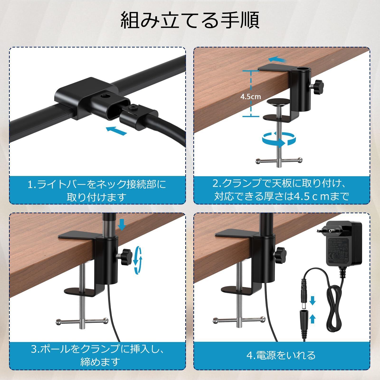組立&アフターサービス:組み立ては非常に簡単で、配線もすっきり整理できます。組立手順は取扱説明書または図⑦を参考してください。その他のご質問がございましたら、いつでも遠慮なくお問い合わせください。パッケージ内容:デスクライト本体、長さ150cmの電源アダプター、説明書、24/7アフターサービス。
