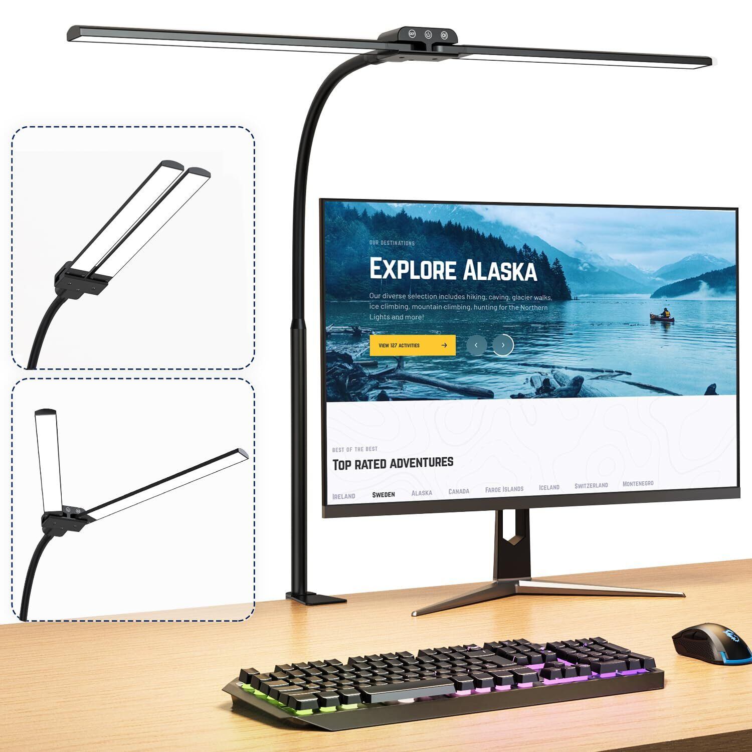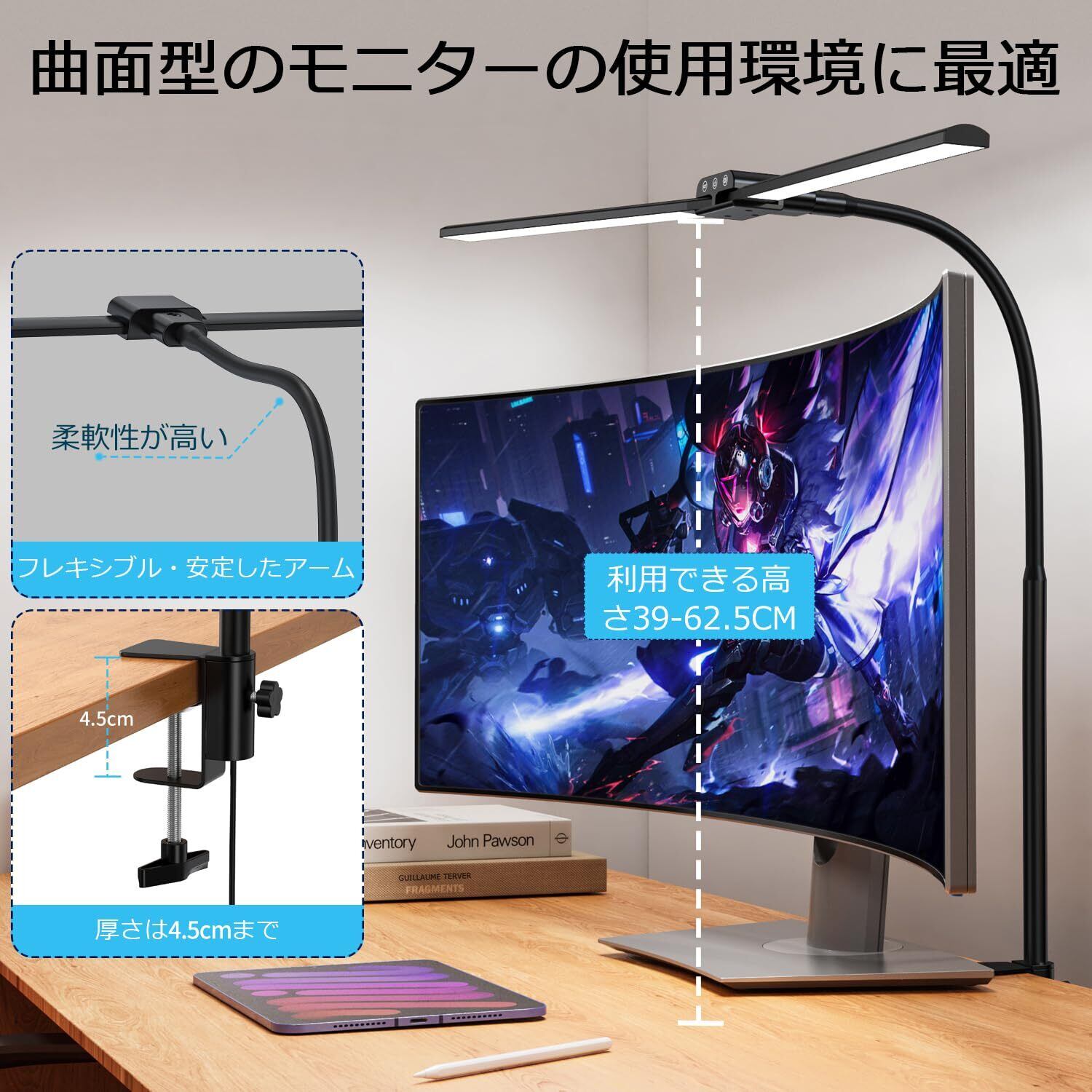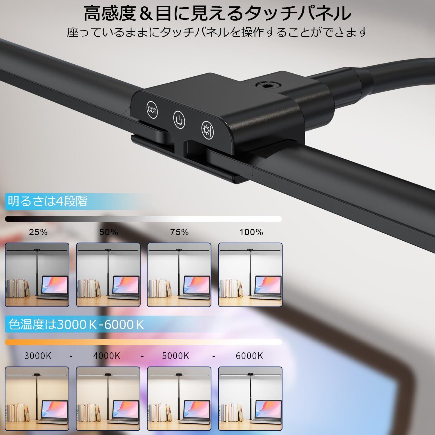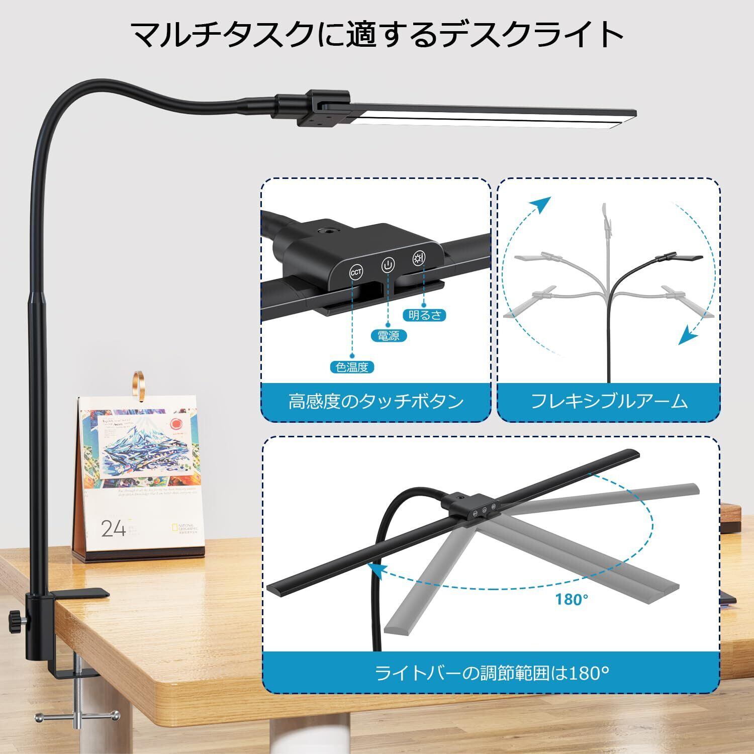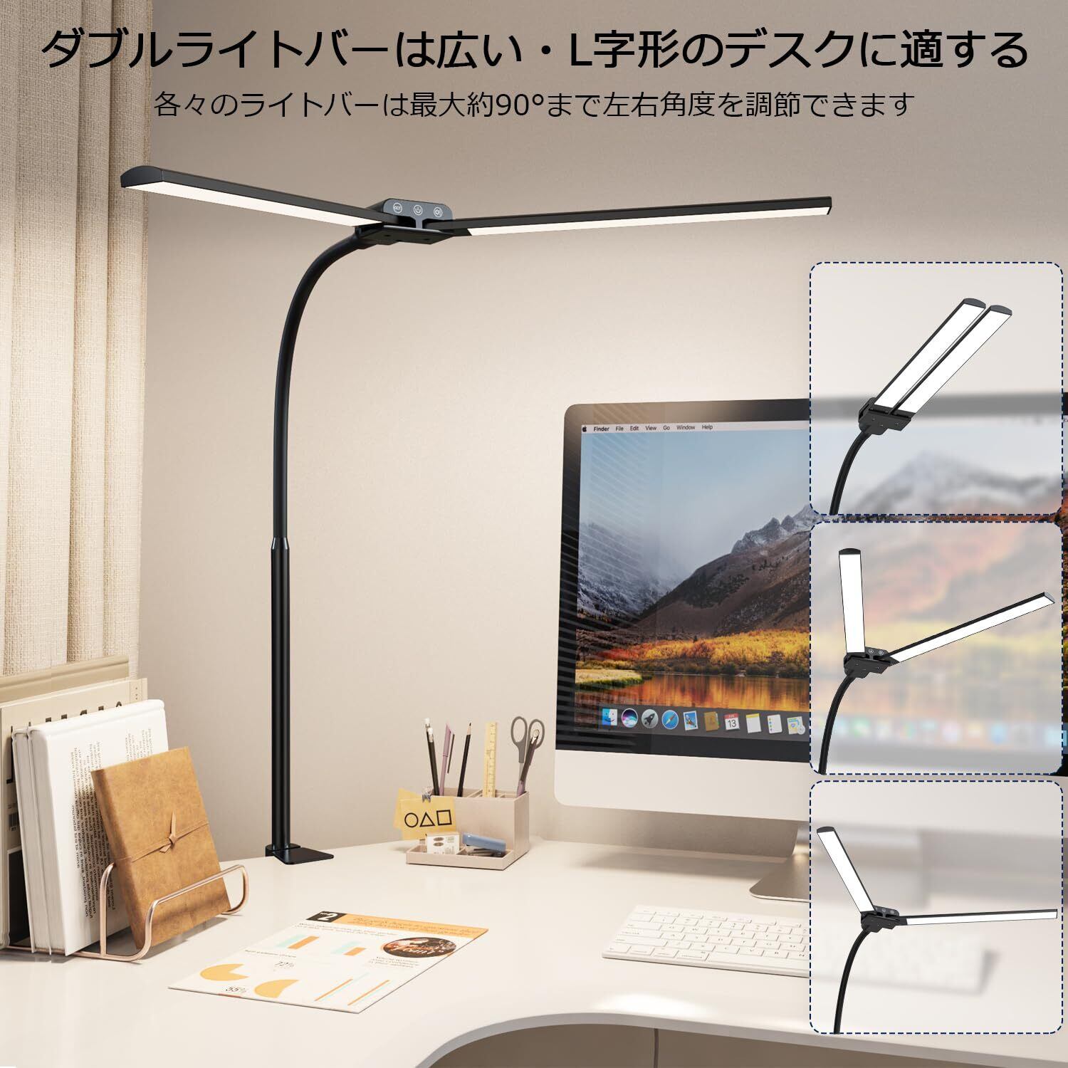 デスクライト LEDダブル光源電気スタンド KableRika 12W目に優しい卓上ライト クランプ式 4色温度・4段階調光・明るい高輝度 30分のタイマー 自動消灯 タッチパネル デュアルライトバー フレキシブルアーム おしゃれ ra90 PSE認証済