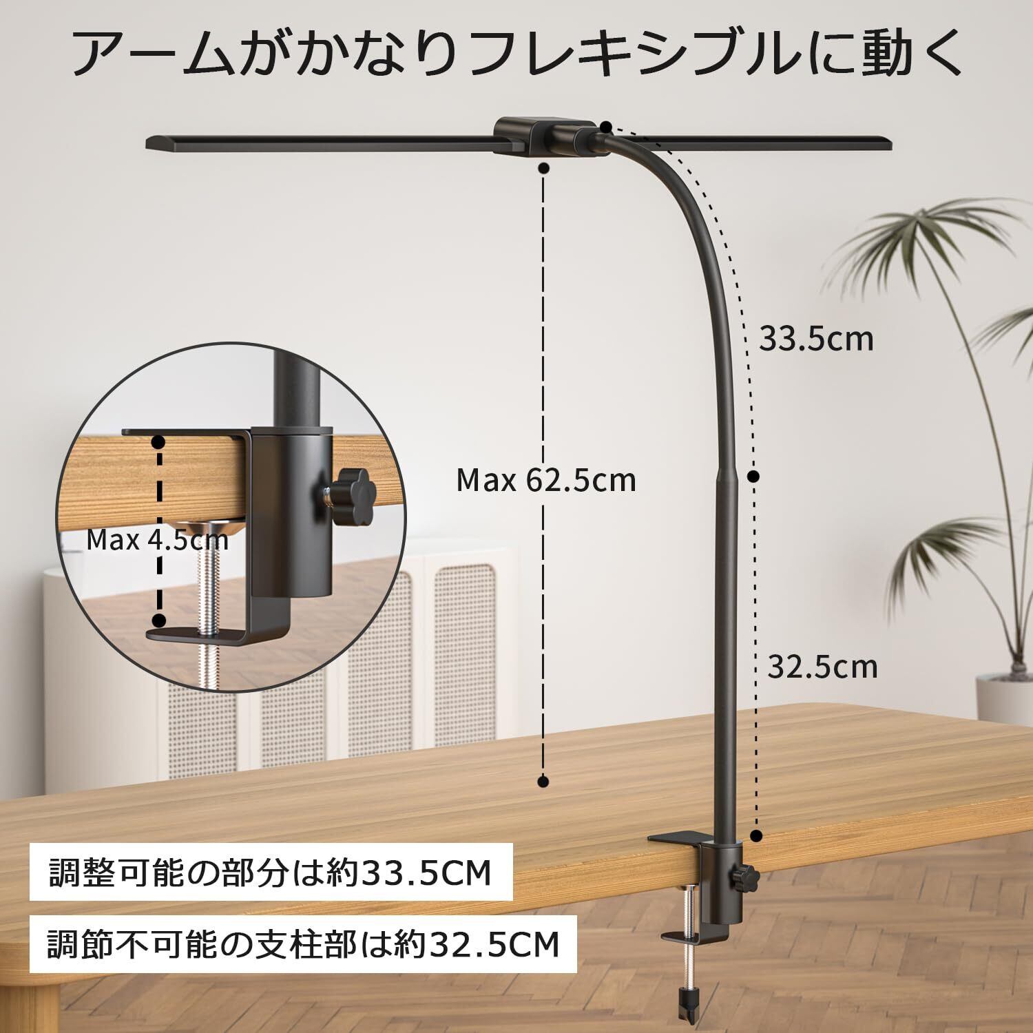 フレキシブルアーム&クランプ式:アームは約66cmの長さがあり、上部の33.5cmだけはシリコンとステンレス鋼の素材でフレキシブルに曲がります。クランプの最大挟む厚さは4.5cmまで。離れ離れのクランプはいずれの方向に取付可能。【クランプのネジはとめずに回し続けることができますが、ふさわしい位置で止まれば固定できます。】