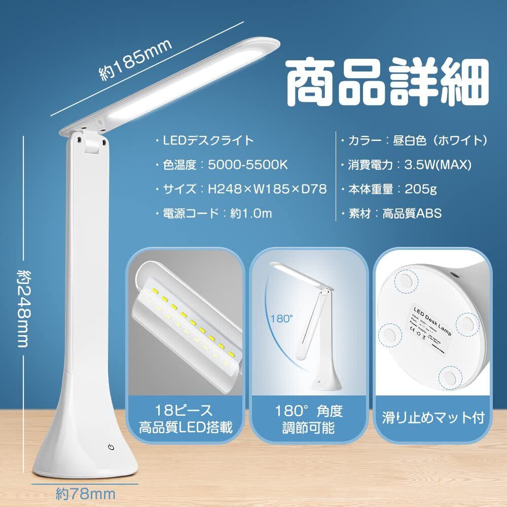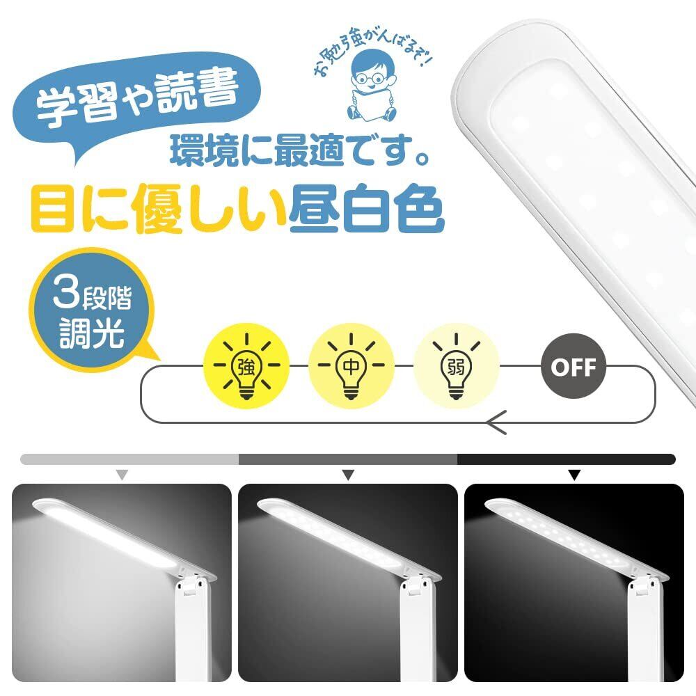創優会 スタンド式 LEDデスクライト 折り畳み USB充電 コンパクト収納 3段階調光 学習向け 図書館読書 テレワーク補助灯 防災ライト 目に優しい明るさ 昼白色 ホワイト 省エネ SouYuuKai (スタンド式-ホワイト)