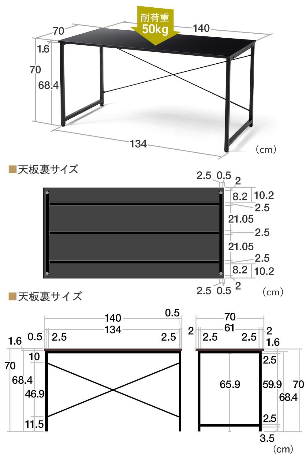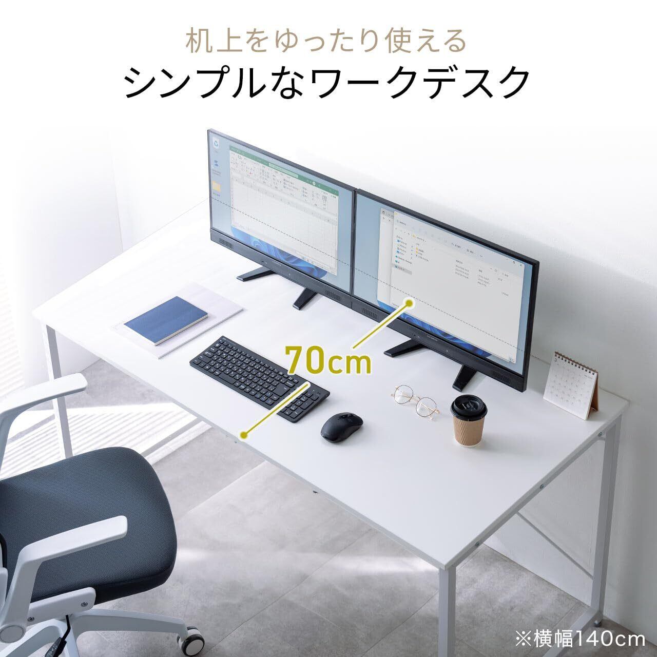 横幅 140 cm、奥行 70 cm、高さ70cmのシンプル ワークデスク です。
