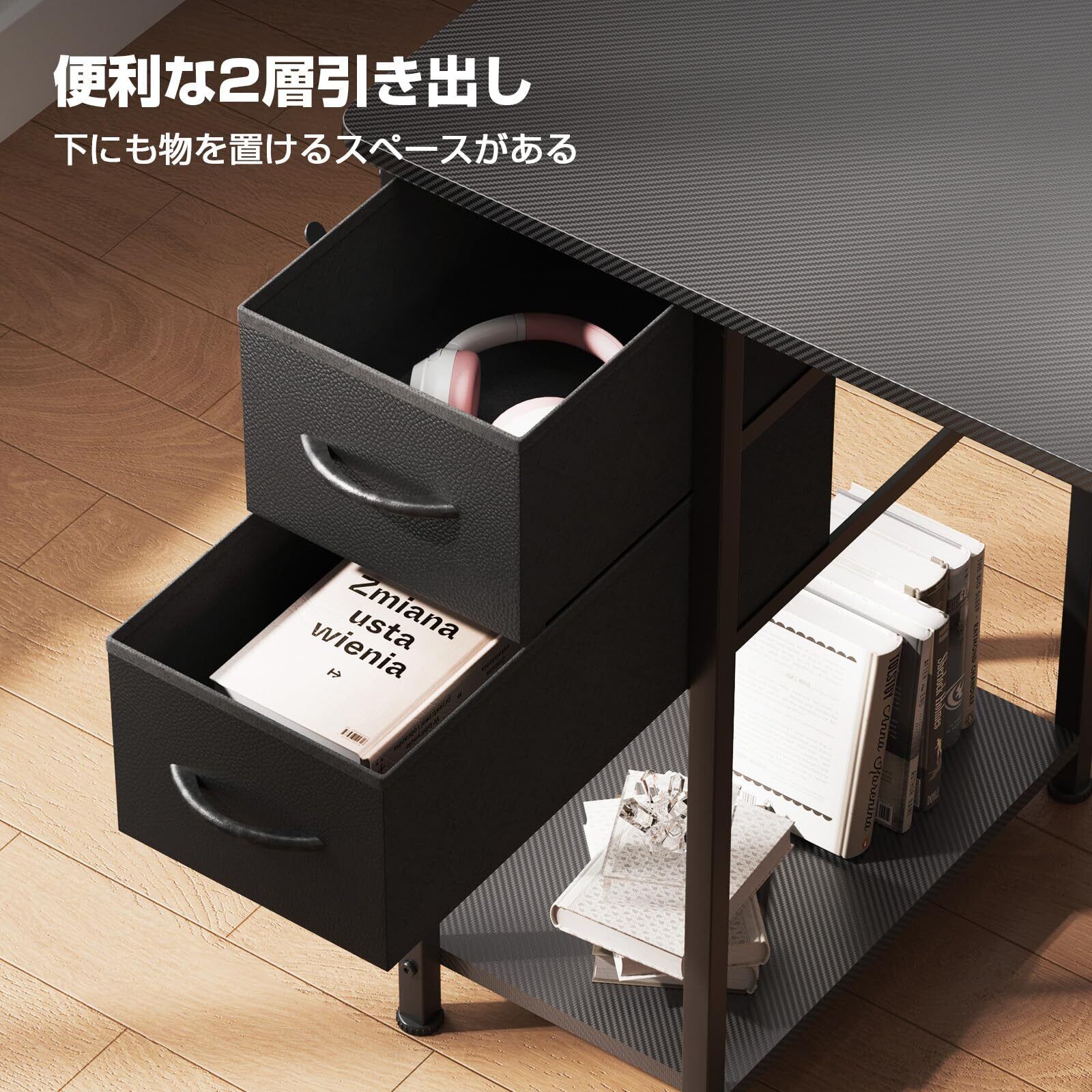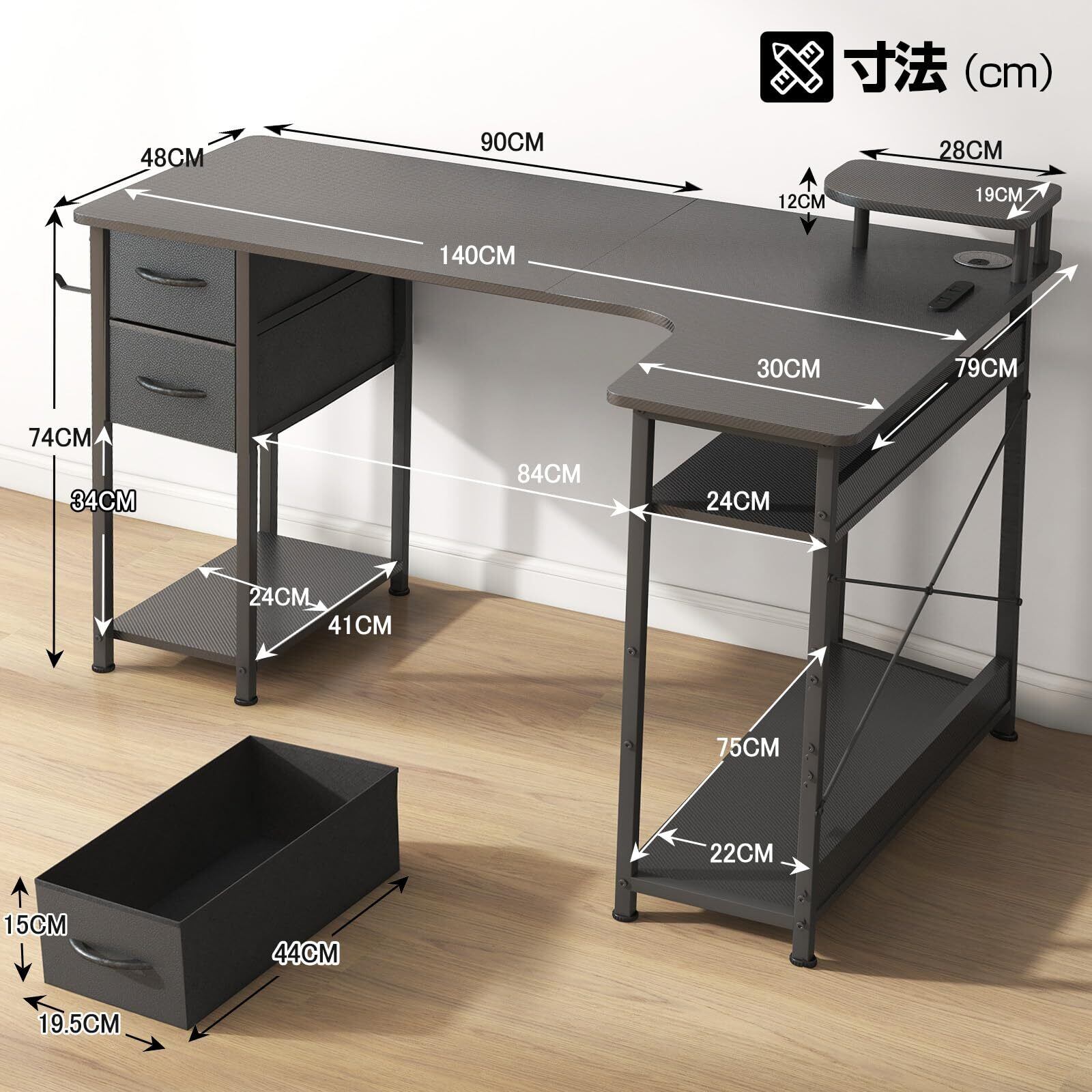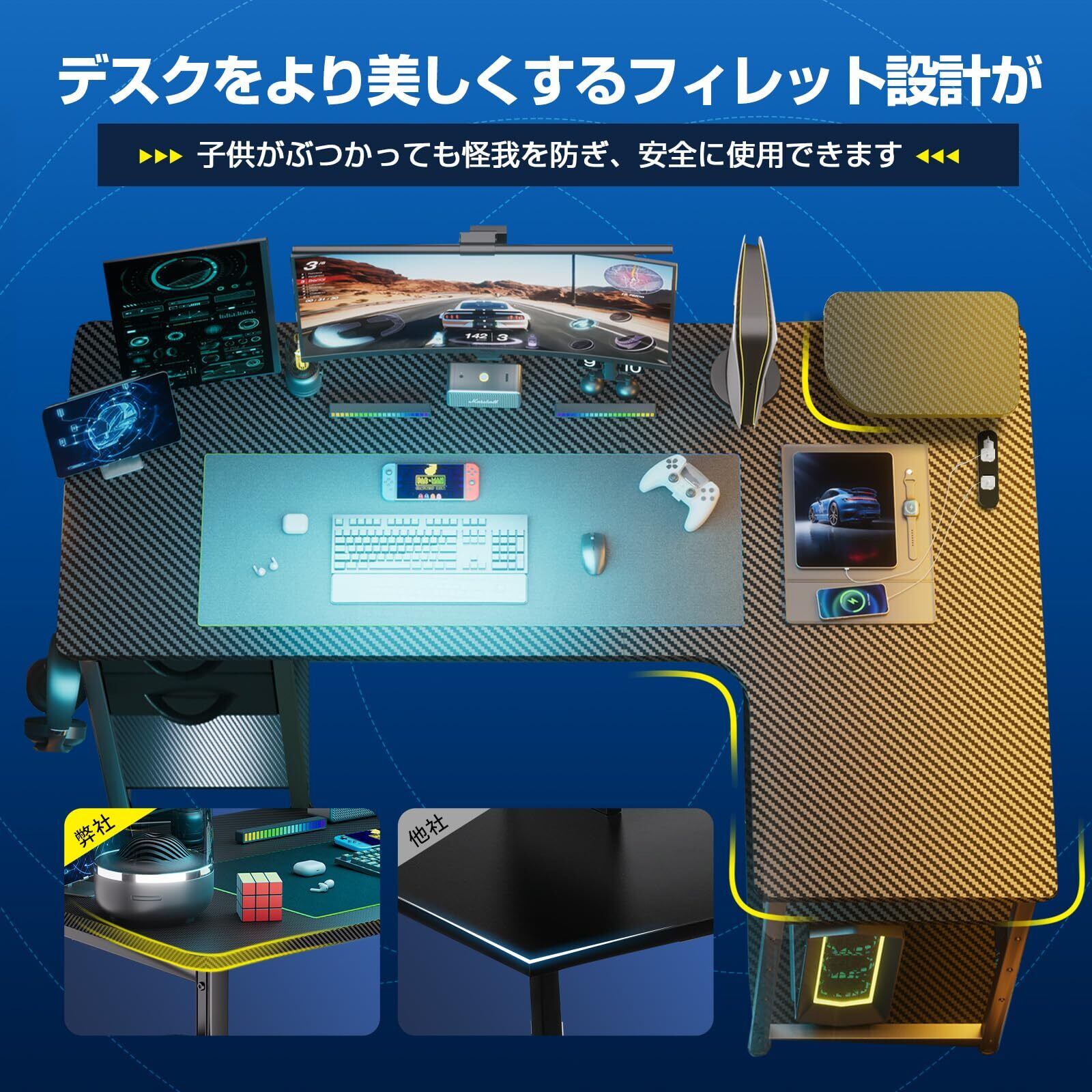 【高級感溢れるカーボン調&人気の理由】アップグレードされたL型ゲーミングデスクで、広々とした空間と抜群の収納力を手に入れよう!「ファッショナブルなデザイン」×「高級感あふれるカーボン調」×「2層引き出し付き」×「コンセント付き」×「可動式棚」×「小型モニター台」×「配線穴」×「物の落下防止の仕切り板」など、便利で機能的なデザインがさまざま。美しさと実用性を兼ね備えた究極の選択です。