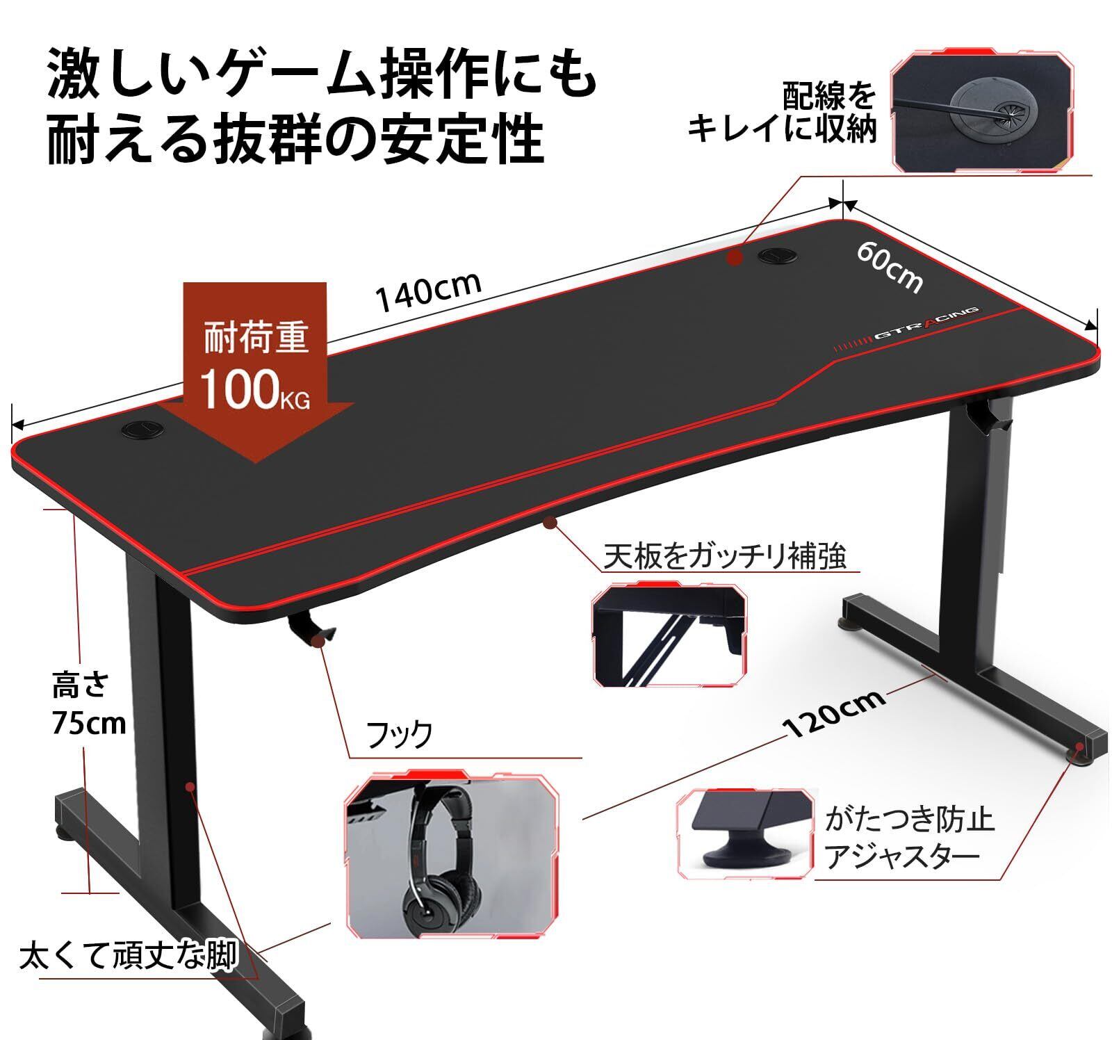 【極めた耐久性と実用性】幅140cm×奥行60cm×高さ75cmの広々としたゲーミングデスクです。強化されたフレームはデスク全体をぐらつかずに安定させ、さらに、パソコンデスクや勉強机、ゲーミングデスク、作業台など、ご自宅からオフィスまで、あらゆるシーンで活躍します。さまざまな用途や環境に対応しています。
