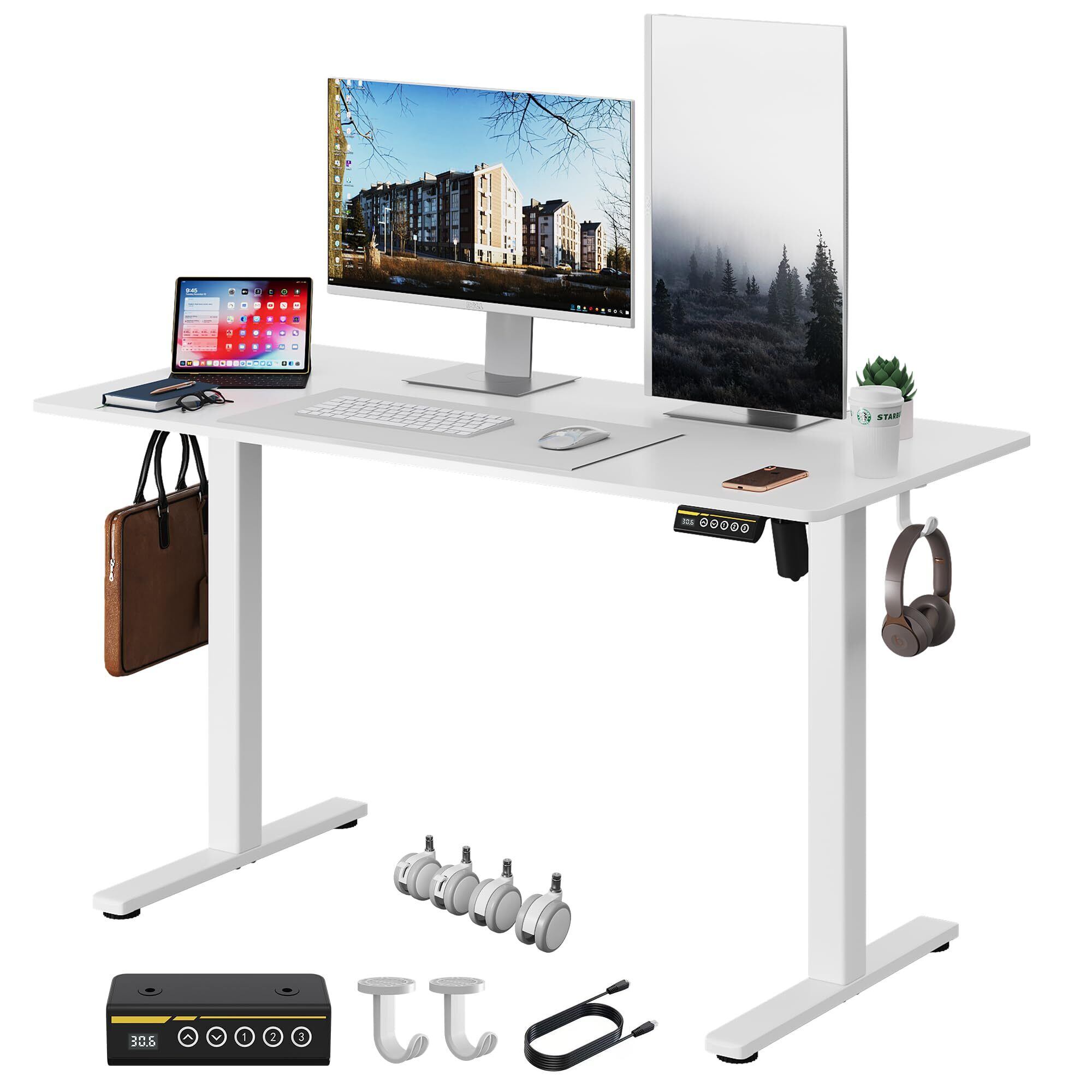 Gamork 電動スタンディングデスク 高さ調整70CM-118CM ゲーミングデスク メモリ機能/フック/ロック可能なキャスター サイレントモーター 勉強、ホームオフィス、リモートオフィス、一人暮らしに最適 (ホワイト, 幅 120 cm x 奥行き 60 cm)