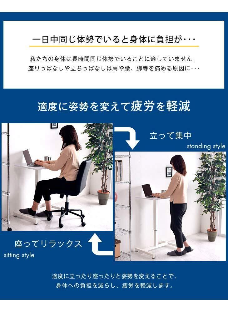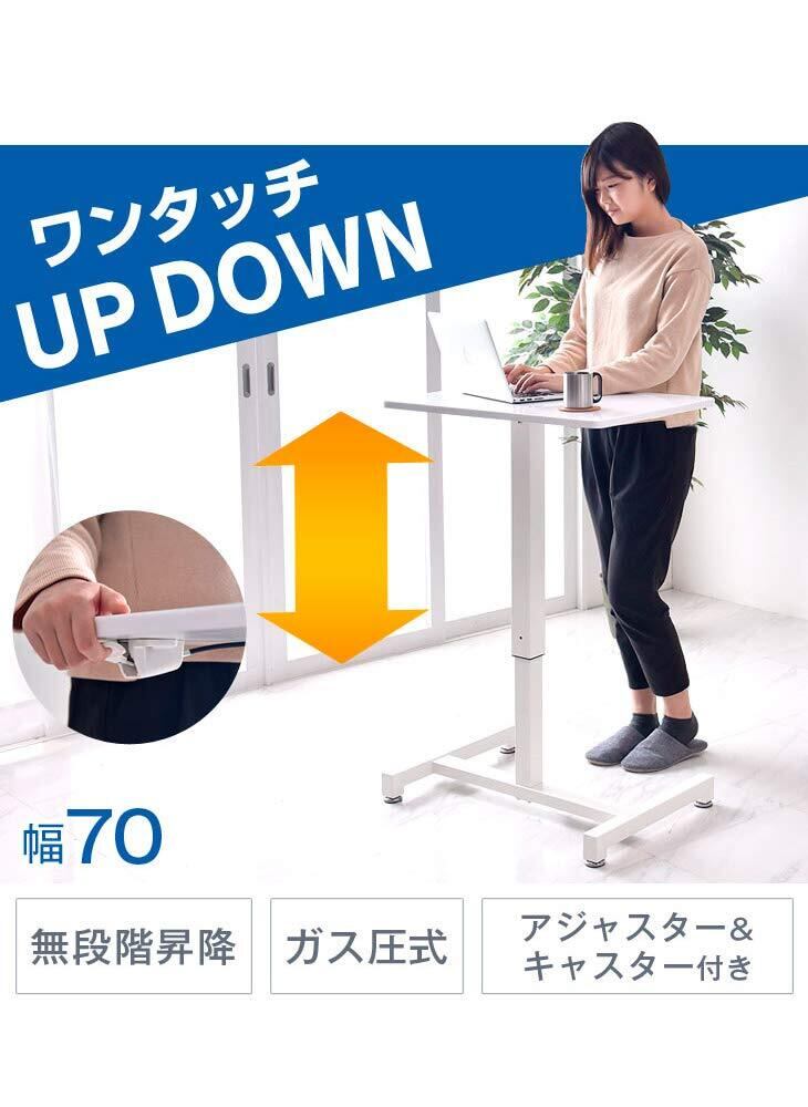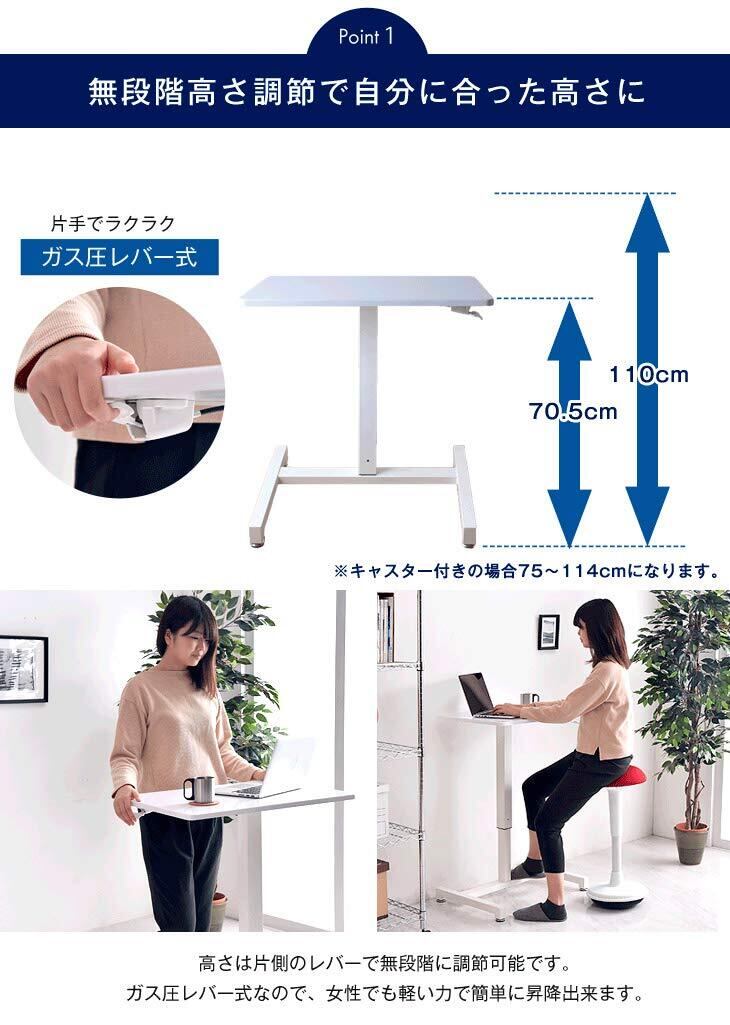 タンスのゲン スタンディングデスク 昇降デスク 幅70cm 高さ70.5~110cm ガス圧 手動 ワンタッチ 昇降 デスク テーブル 無段階調節 昇降式テーブル パソコンデスク PCデスク 鏡面ホワイト 45400005 00 (58045)