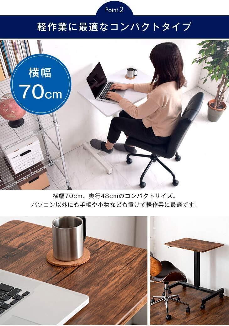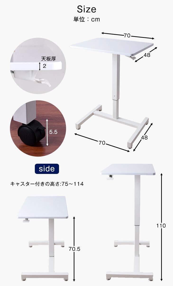 【サイズ】[外寸]アジャスター付き:幅70×奥行48×高さ70.5~110cm / キャスター付き:幅70×奥行48×高さ75~114cm / 天板の厚み:2cm