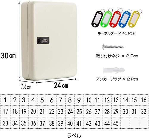 キーボックス キーケース 壁掛け 暗証番号タイプ 鍵収納 オフィス用 家庭用 45キー(ホワイト)