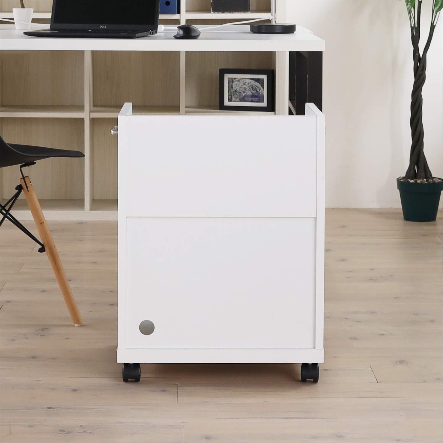 白井産業 デスクサイドに便利 サイドワゴン ラック キャスター付き デスク下収納 A4ファイルボックス対応 背面化粧 木製 白 幅45 高さ59.2 奥行34.3cm OF2-6045P オフィスコ2