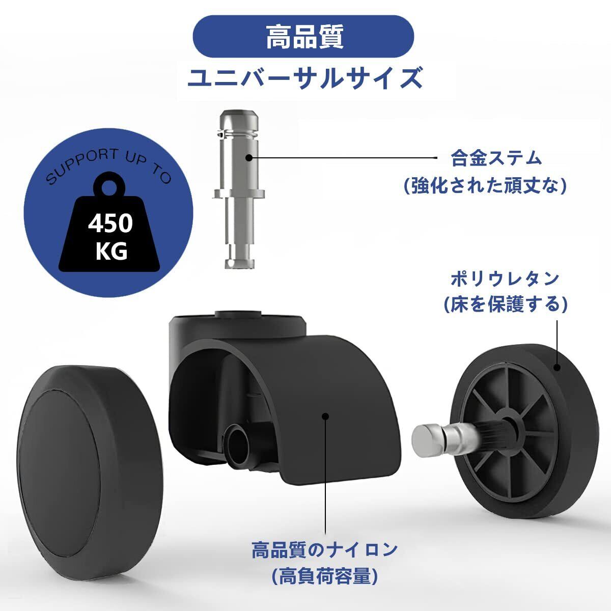 【高品質】キャスター 交換に質の高いポリウレタンがコーティング加工 - 床をしっかりと守ることができ、傷つけにくく、痕を残さず、差し込み式キャスターの使用寿命を延ばすとともに、床の保守費用も減らすことができます。耐久性に優れ、軽量にも関わらず優れた耐荷重性を持っています(最大耐荷重 450 キロ)優れた品質.