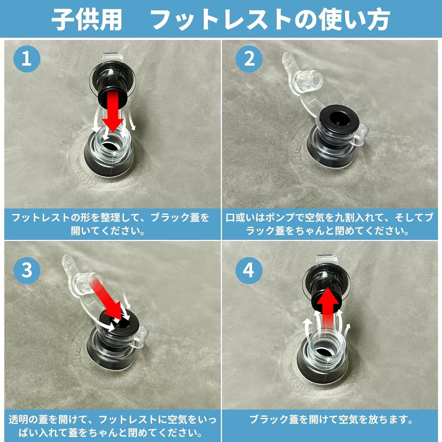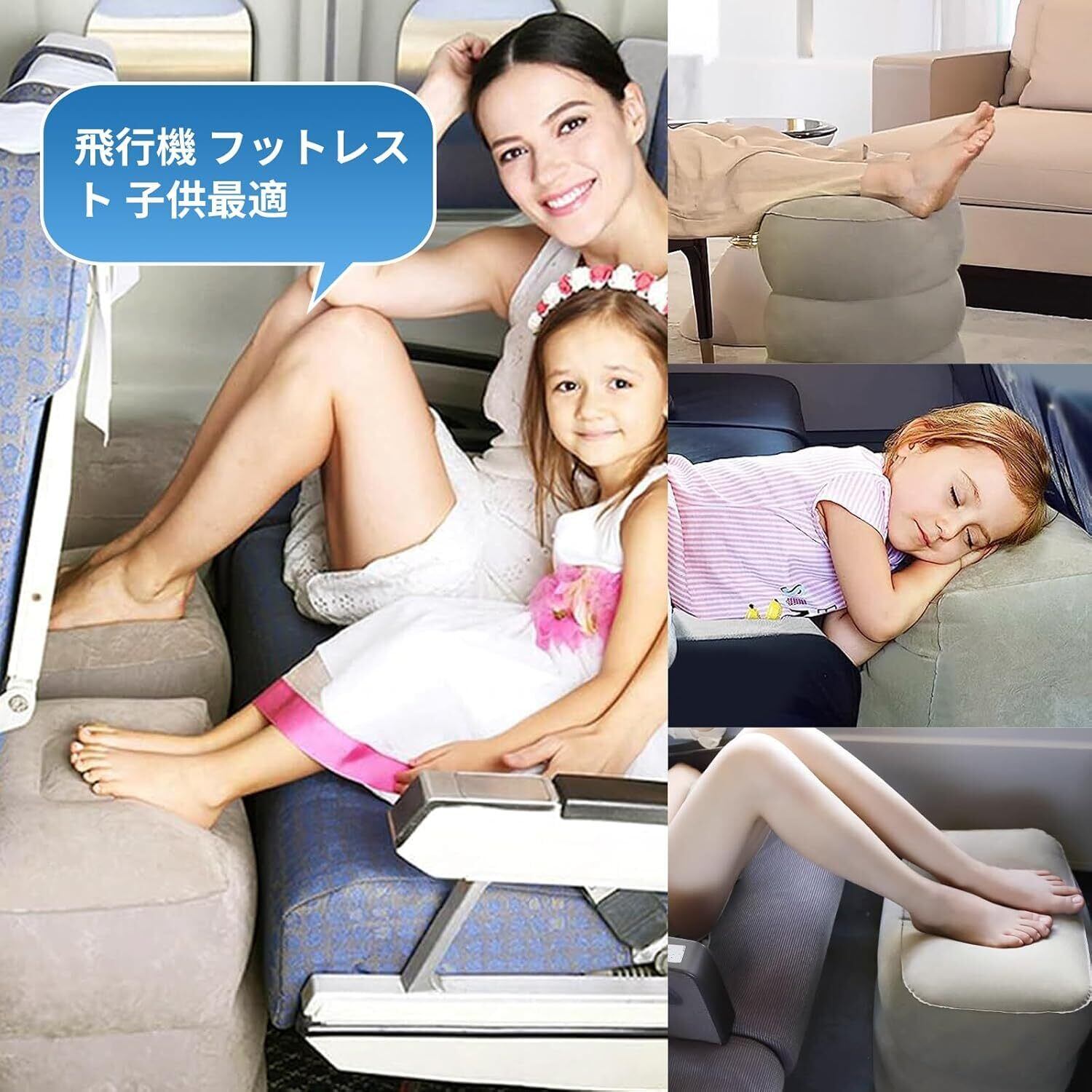 ✈【子供用飛行機 フットレスト&使用機能】第三代エアー足枕が登場する!いろいろ足の疲労を除去することができて、むくみを防ぐことによって、エコノミー症候群の予防にもなります。長距離運転時、飛行機など足の疲れ防止に効果的であるため、フットレストを開発いたしました。