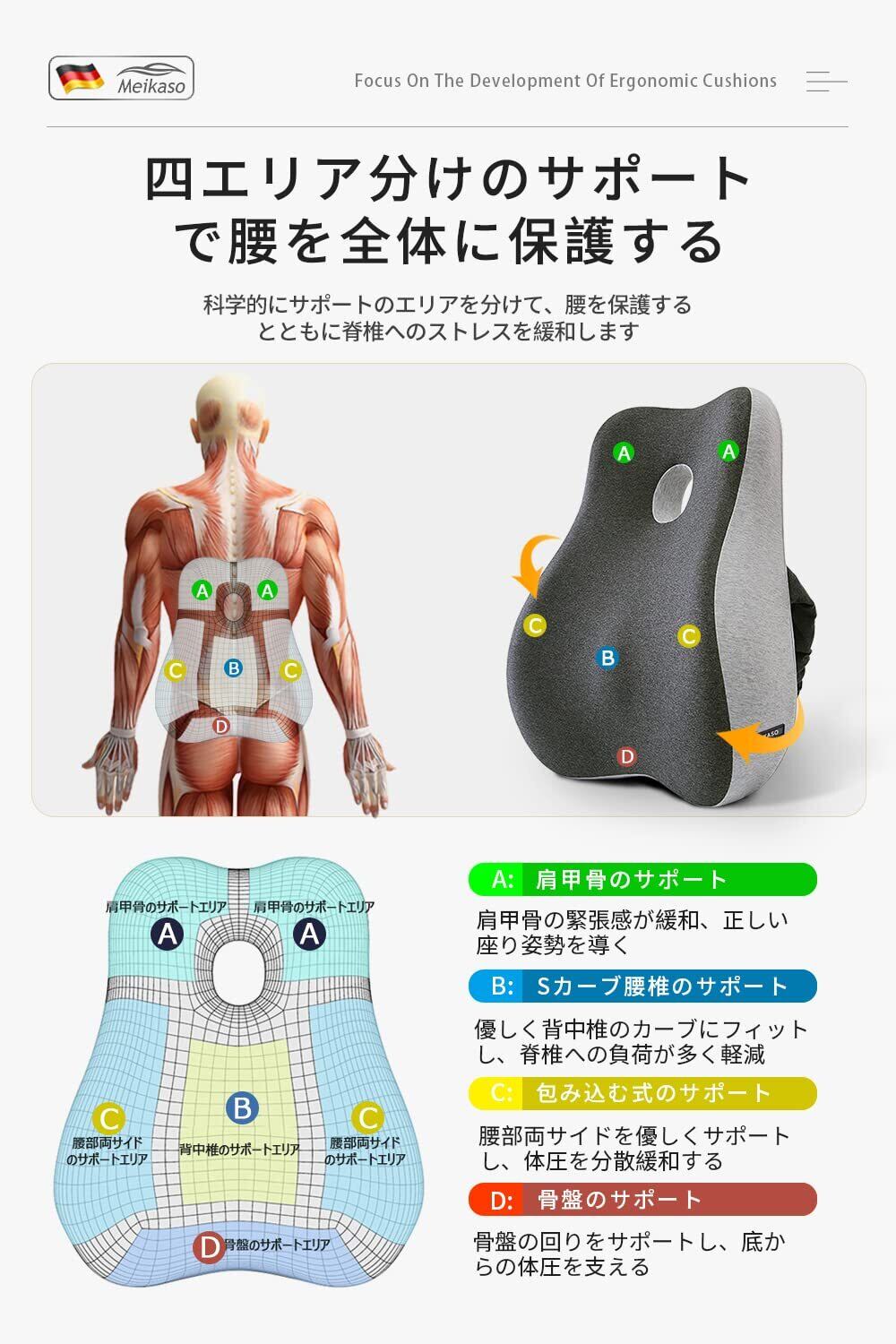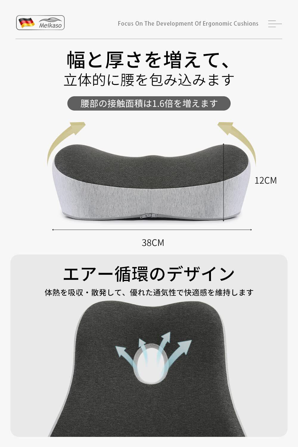 【理学療法士監修】Meikaso 腰クッション ランバーサポート 椅子 車用 クッション ウェストクッション 中空背当て 運転クッション 腰楽 低反発 腰枕 背もたれ 通気性 腰サポート 人間工学 車/自宅/チェア用品 取付バンド 洗える (ダークグレー)