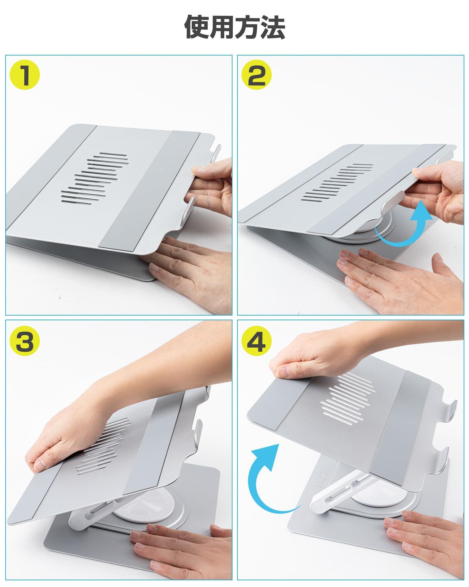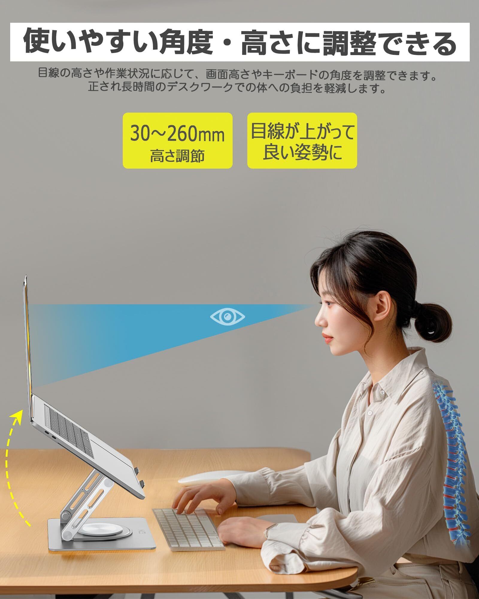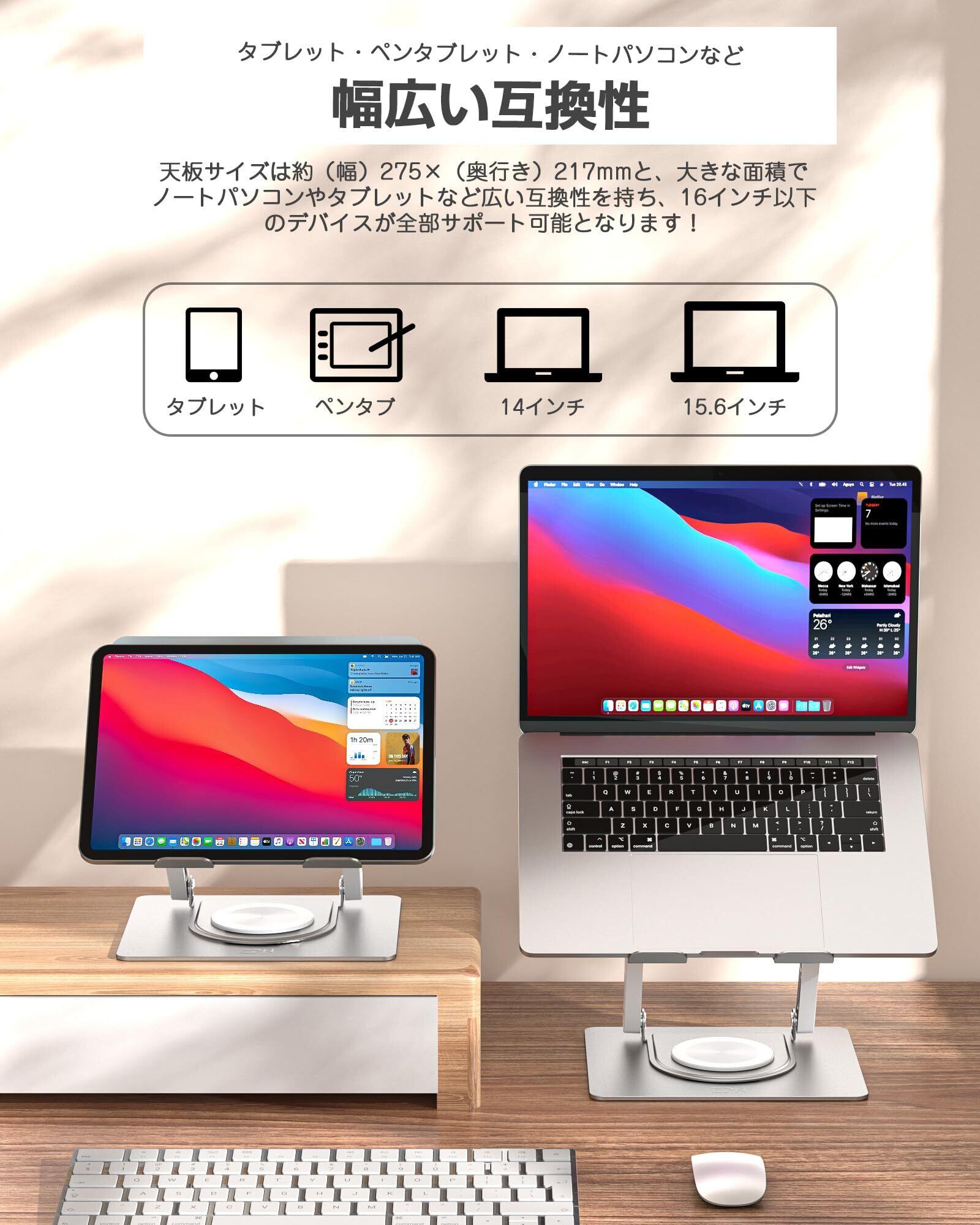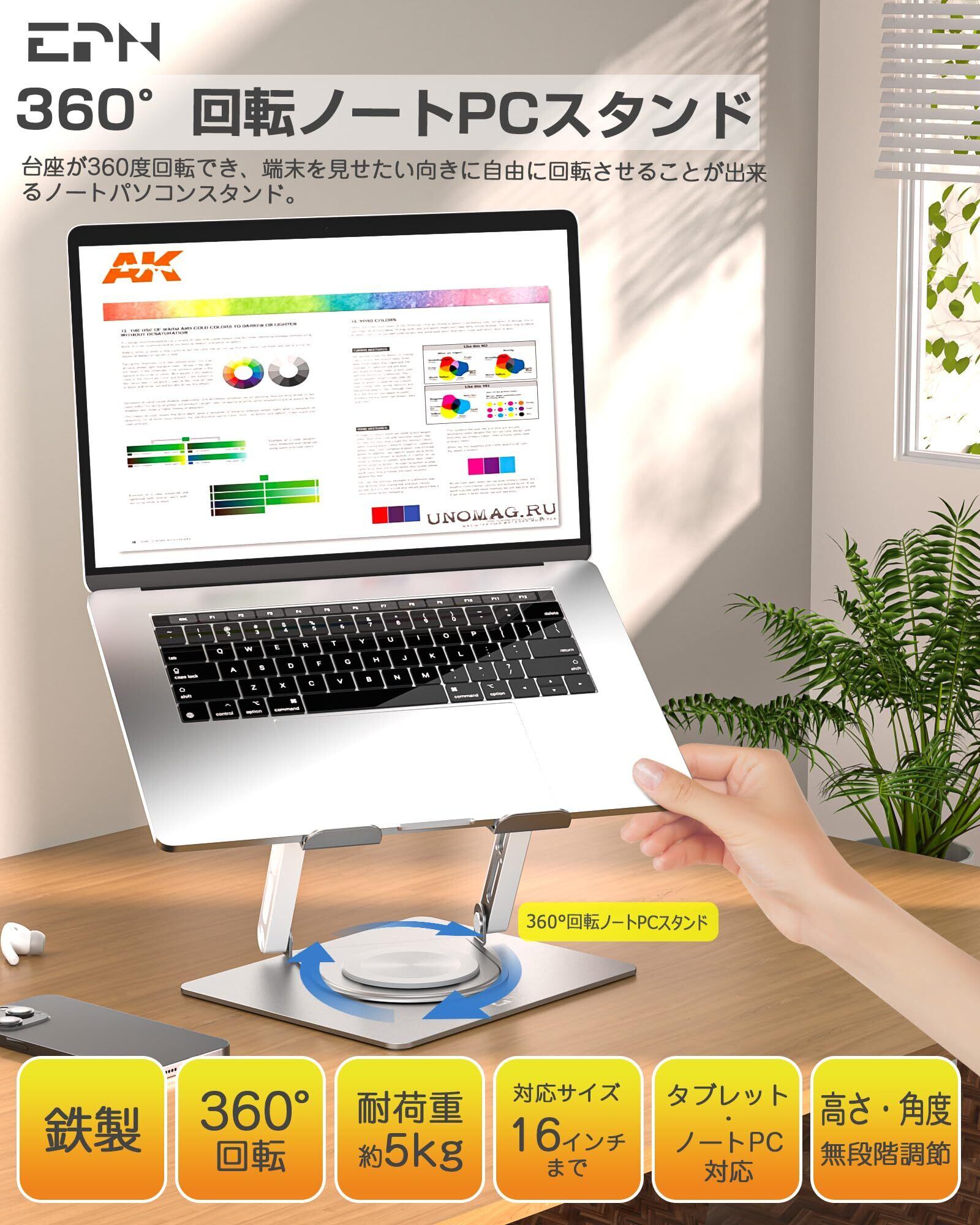 EPN ノートパソコンスタンド 360°回転式 折りたたみ式 パソコンスタンド 無段階 高さ&角度調整 人間工学 安定性 滑り止め付き