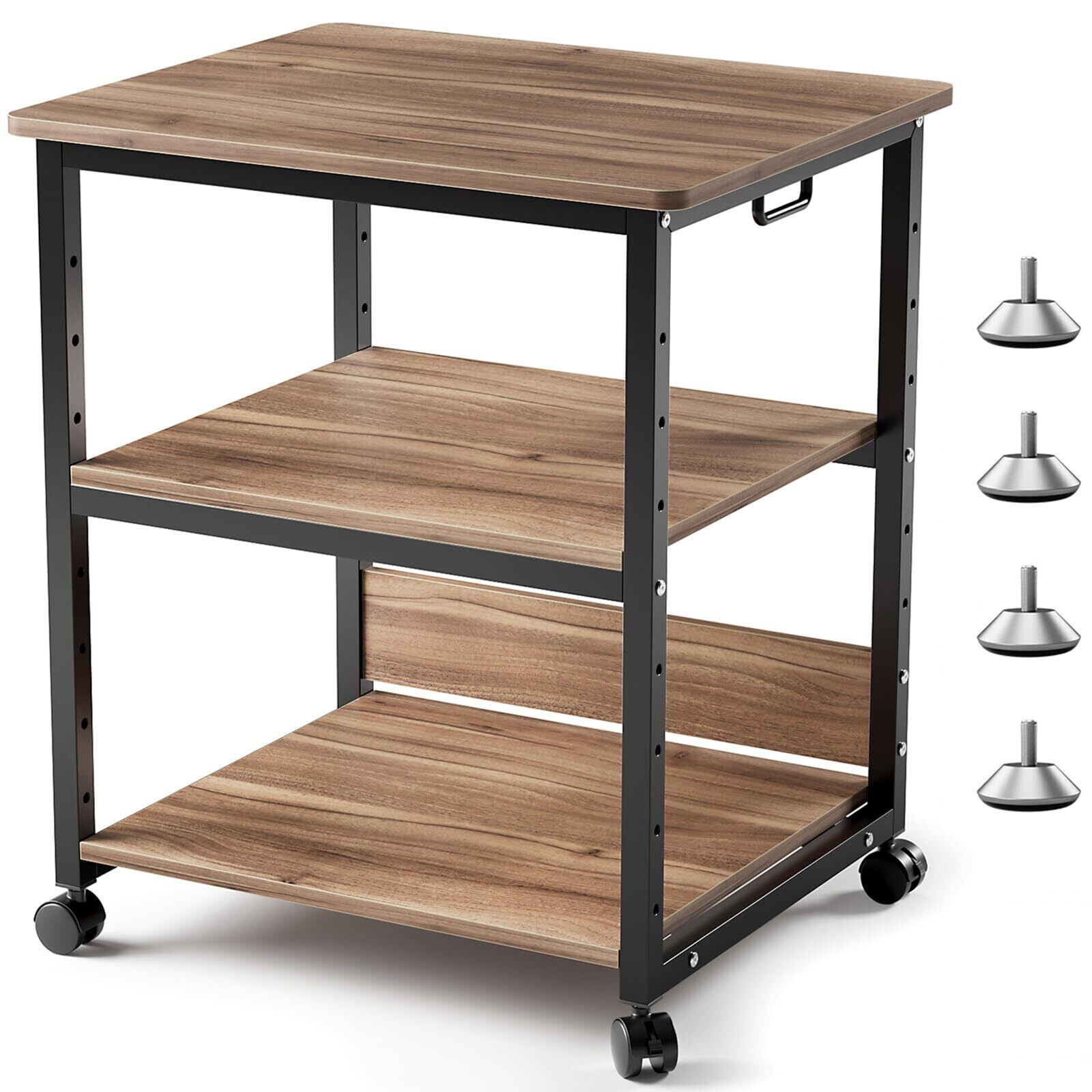 DEWEL プリンター台 キャスター付き a3 プリンターラック プリンターワゴン コピー機 台 プリンタ 複合機 机下 収納 サイド ワゴン ラック 棚 大型 幅60 奥行50cm 高さ70cm 高耐荷重 (ウォールナット色HT833)