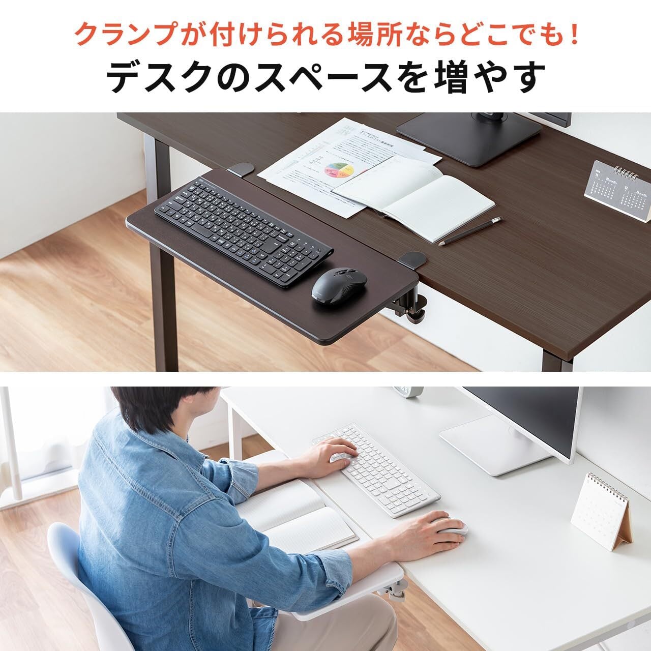既存の デスク に クランプ で簡単に取付ができる 拡張テーブル です。
