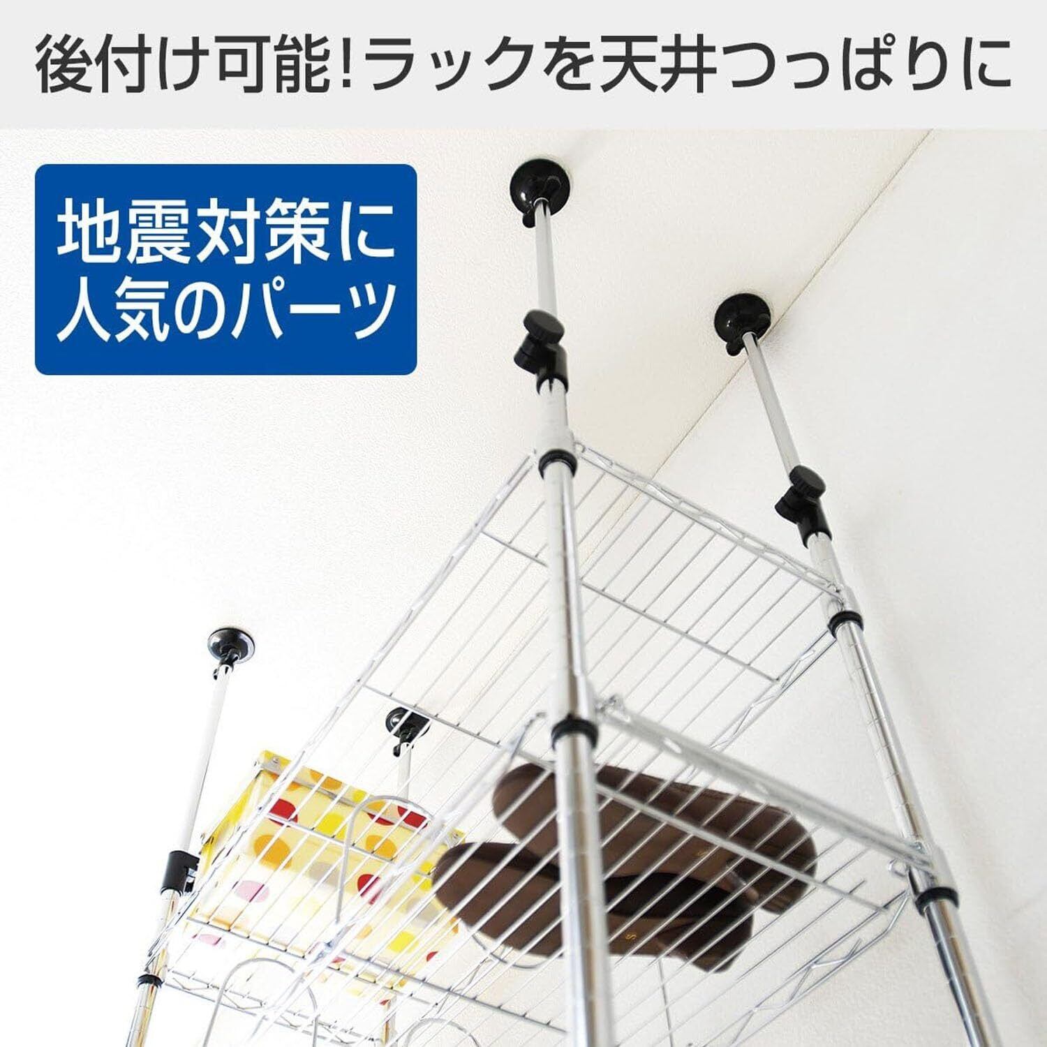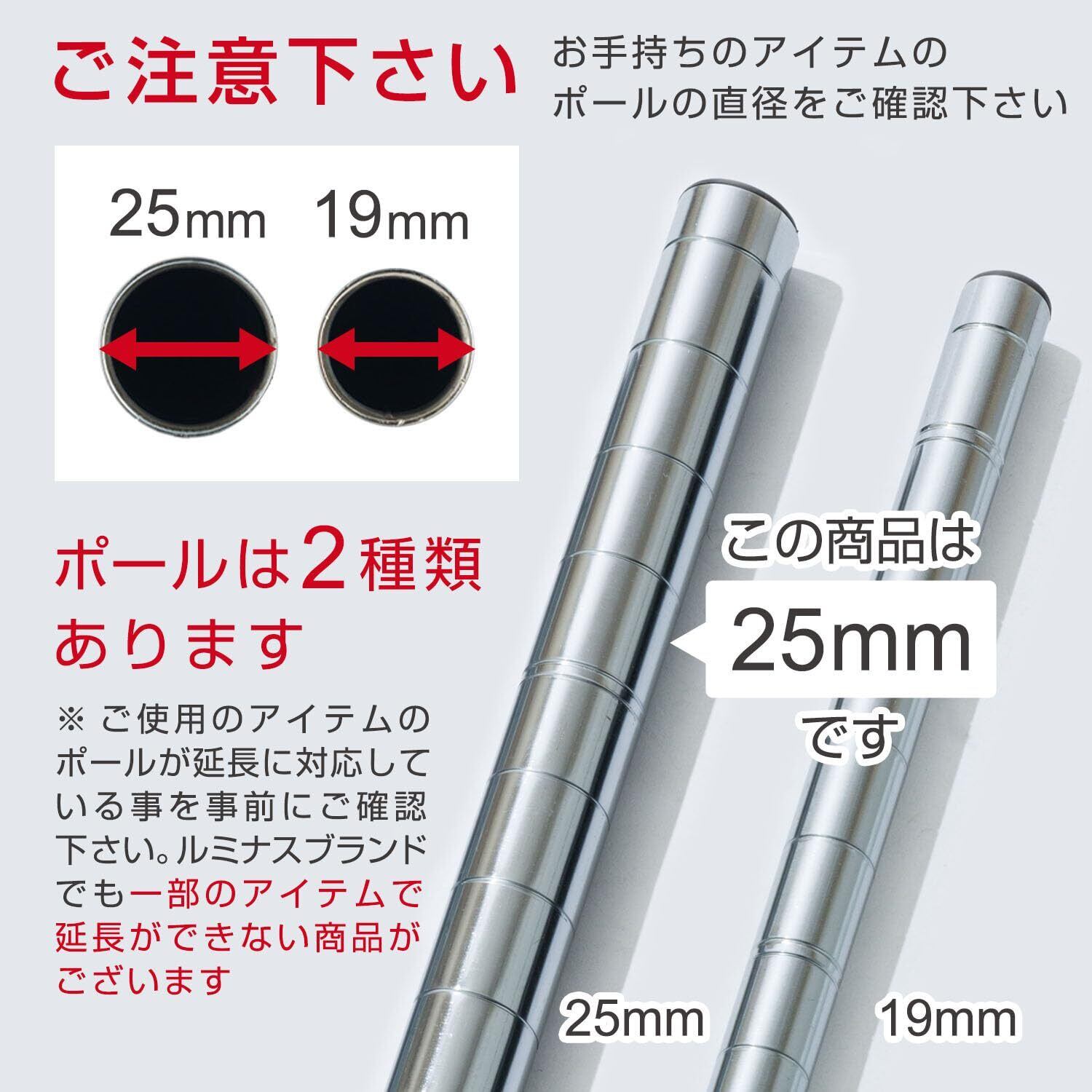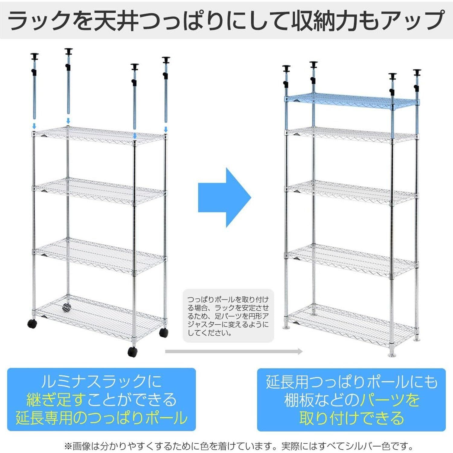 ドウシシャ ルミナス スチールラックパーツ 転倒防止 高さ延長 突っ張りポール 支柱 2本セット ジョイント付き 高さ47~74cm ADD-P2545J ポール径25mm 段差対応 diy 後付け 天井 強力 防サビ加工 軽量 キッチン ランドリー