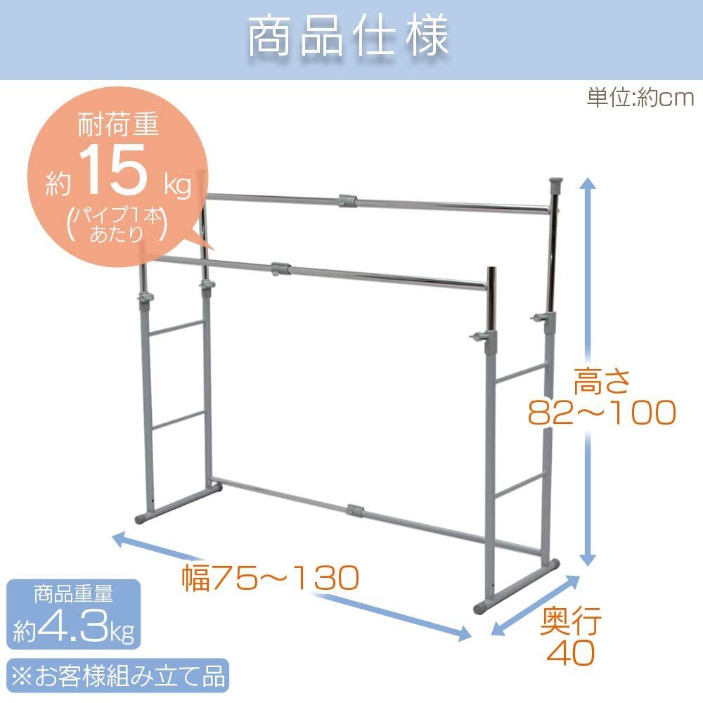 耐荷重:パイプハンガー1本あたり 約15kg
