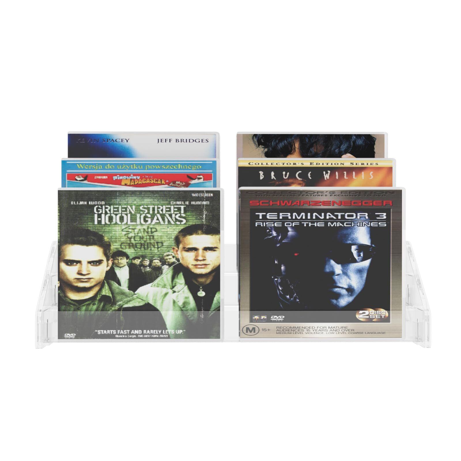 3層の透明な亜克力のCD陳列棚:棚の溝の幅1.9cm、4箇の標準的なCD箱を置くことに適します;棚のノッチの長さは31.2cmで、1つのノッチに標準のCDボックスを6個収納できます。